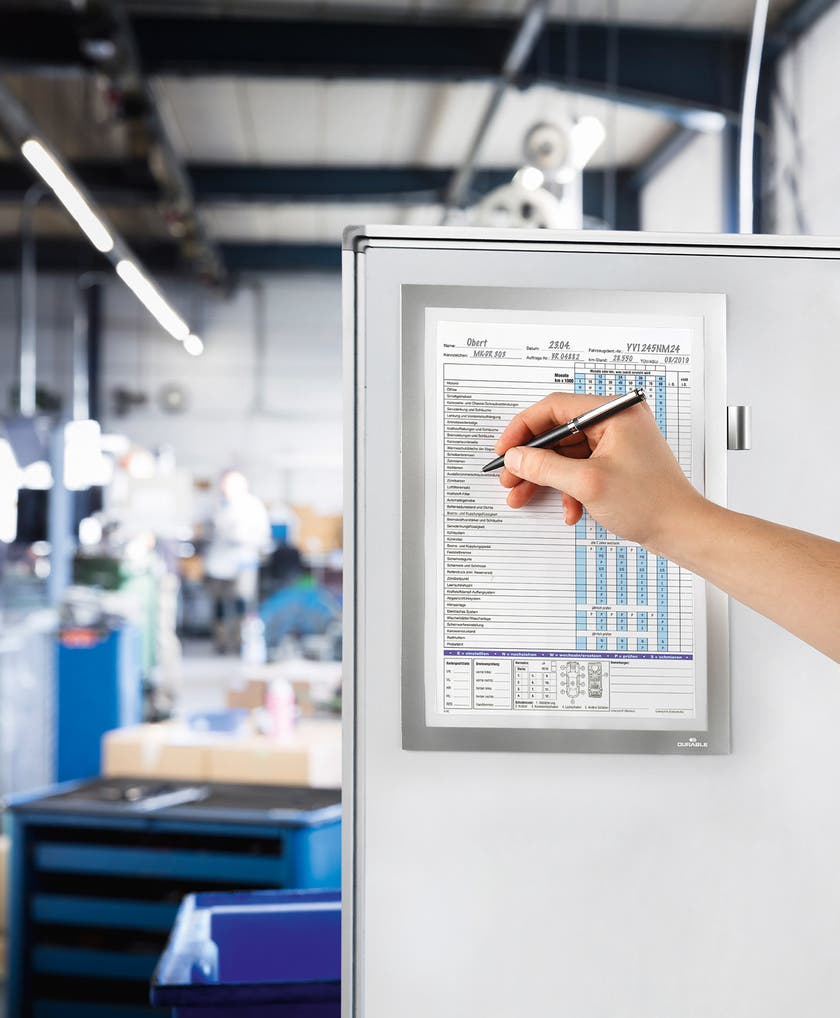 Använd magnethäftande DURAFRAME® MAGNETIC NOTE inforamar för t ex checklistor där noteringar skall göras direkt på pappret.