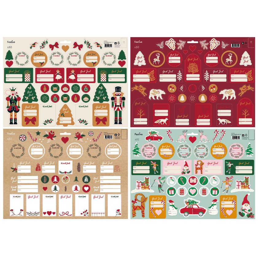 Klassiska juletiketter 80-pack med fyra ark. FSC märkta.