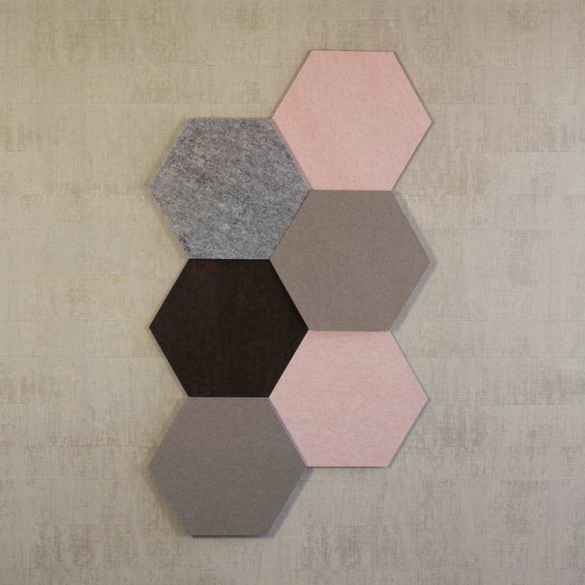 Väggpanelerna Honey är en lekfull ljudabsorberande väggabsorbent med bikupeformade paneler som kan varieras för att bilda unika mönster.