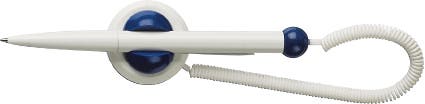 Ergonomiska kulspetspenna Klick-fix med spiralsladd och självhäftande pennhållare. Fäst den självhäftande pennhållaren på en strategisk plats där du behöver pennan som oftast. Bordspennan som sitter fast i en fjädrande kabel. Passar perfekt att placera vid kassan, i bilen, på kylskåpet, på kontoret, receptionen, banken, etc. Enkel att använda med den roterande hållaren.