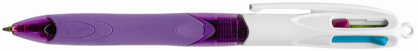 Kulspetspennan som skriver med fyra färger. Bic Grip Pro och Bic Fashon har gummerat grepp. Enkelt byter du färg efter dina skrivbehov och uppgifter. Varje pennfärg innehåller olika färger.