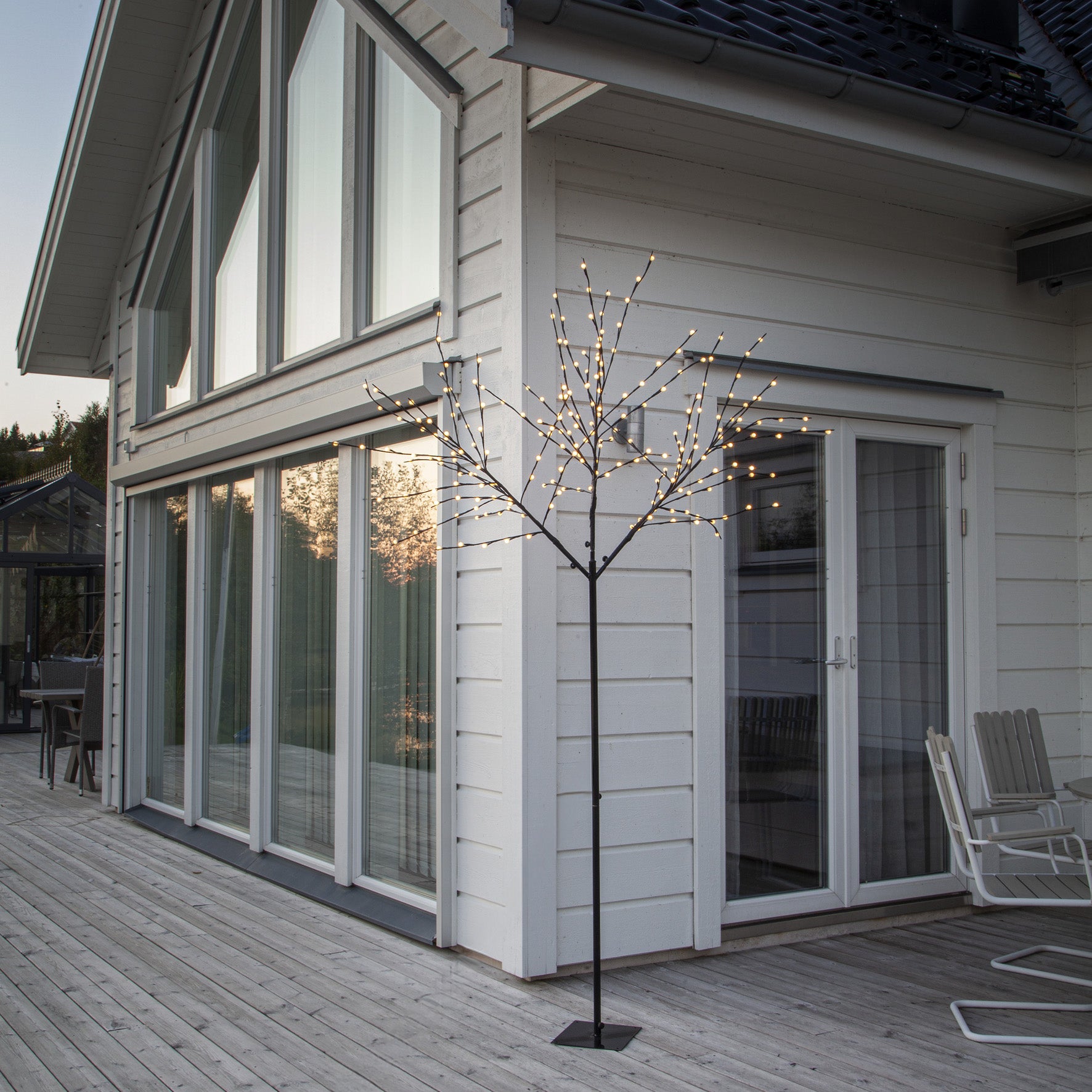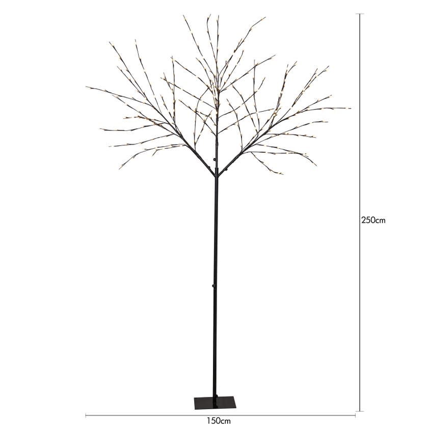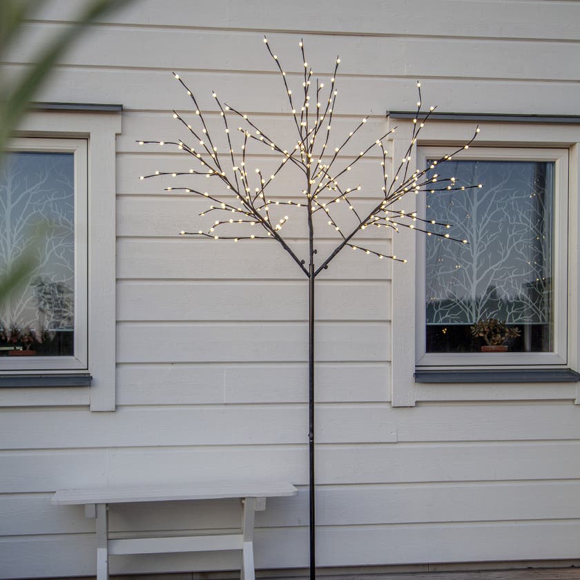Albero från Star Trading är en stilfull utomhusdekoration i form av ett 250 cm högt träd. Dekorationsträdet har svart stam och grenar prydda med vita små bollar ovanför varje ljuspunkt. Utrustat med 240 varmvita LED-lampor som sprider ett varmt och stämningsfullt sken, perfekt både till jul och för året runt-användning.