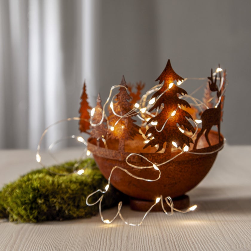 Dekorera och lys upp dina bordsdekorationer eller blomsterarrangemang med denna batteridrivna ljusslinga Dew Drop. En tunn silverfärgad slinga med ett vackert varmvitt sken. Slingan är utrustad med en batteribox med timerfunktion för att enkelt bestämma när slingan ska lysa.
