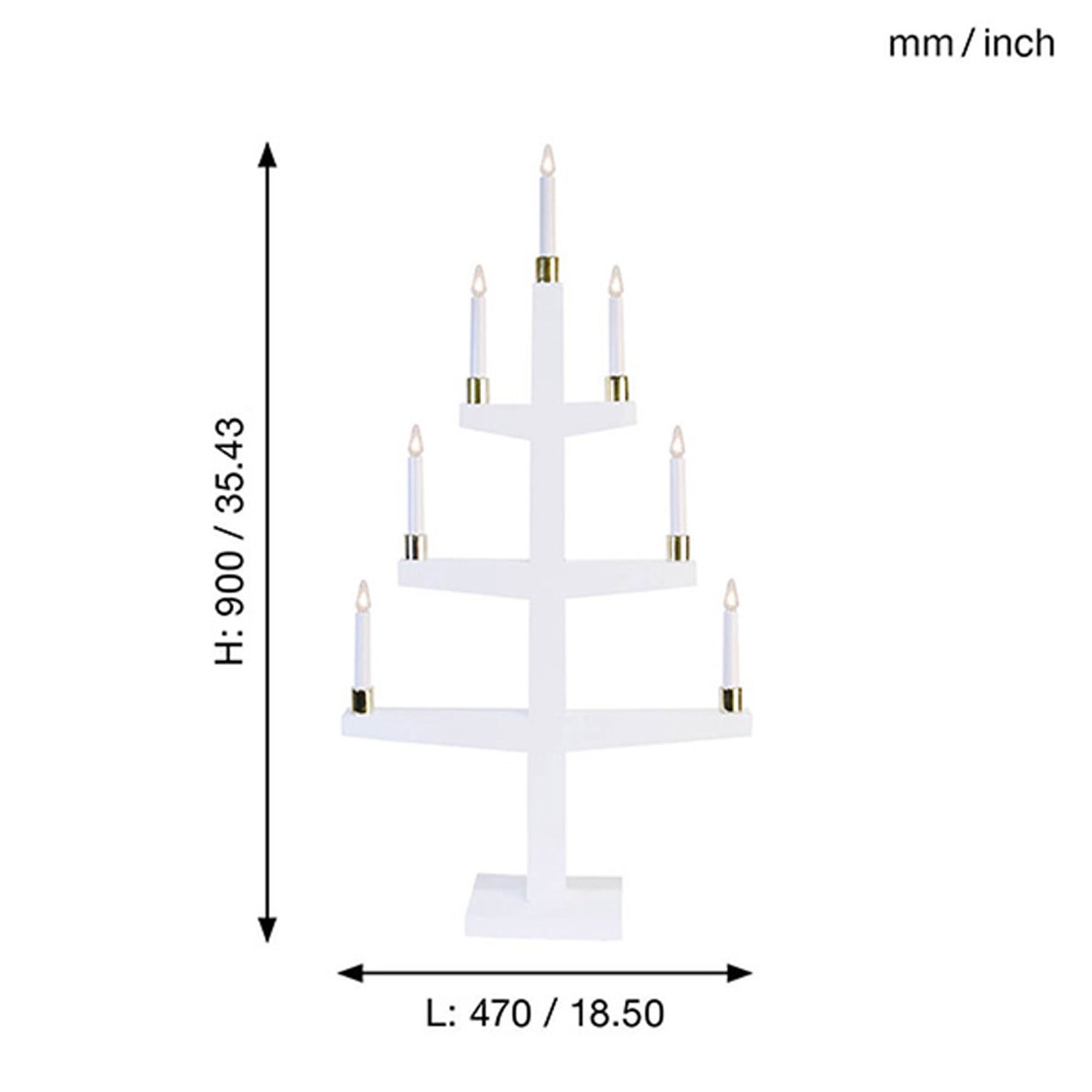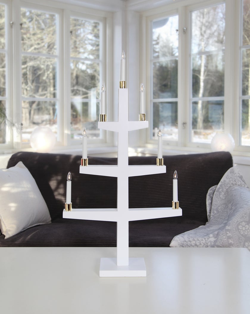 Adventsljusstake Halla är en träljusstake med 7-ljuskällor i LED. Ljusstaken är dekorerad med mässingbelagda ljushållare. Ger ett vackert sken och skapar en hemtrevlig känsla i rummet.