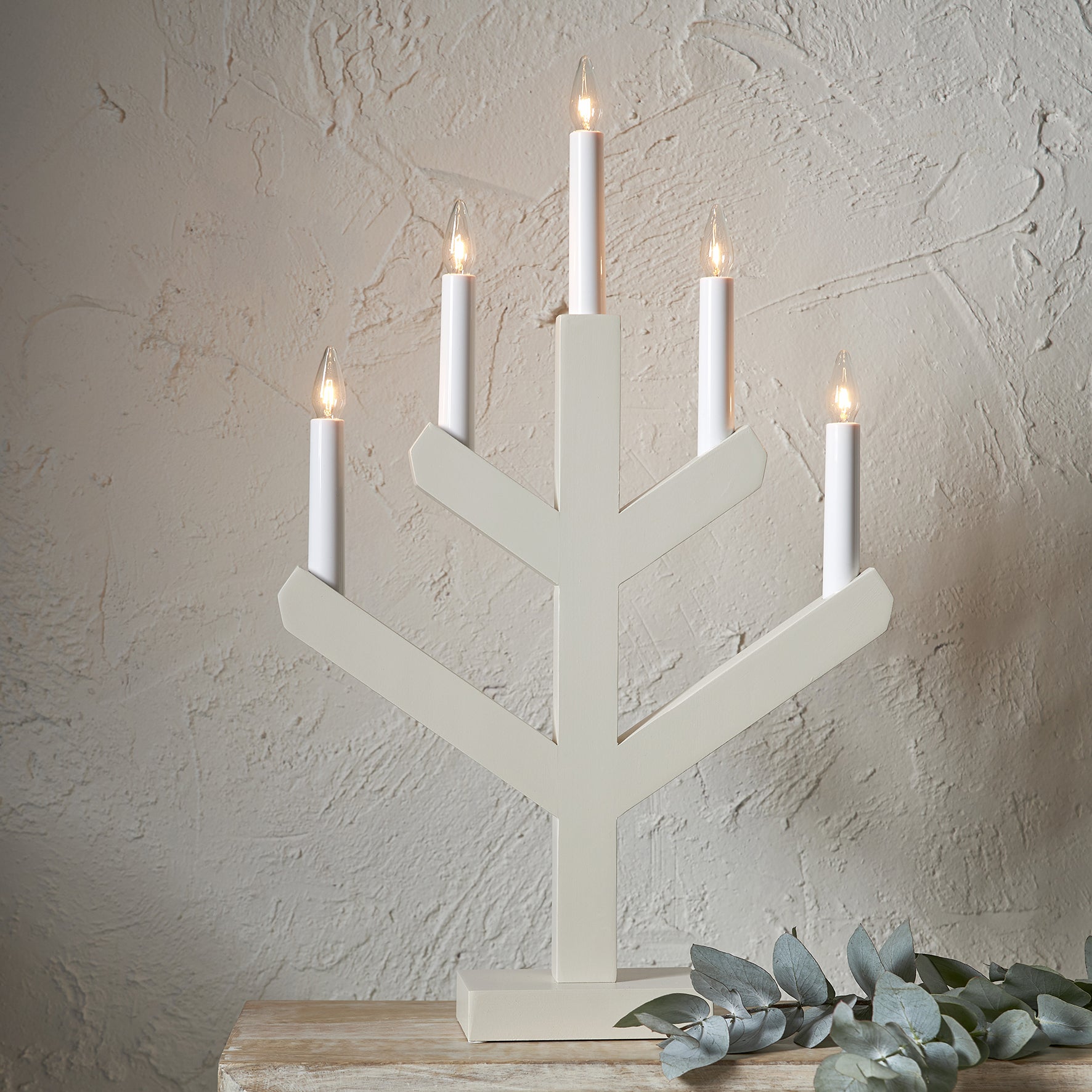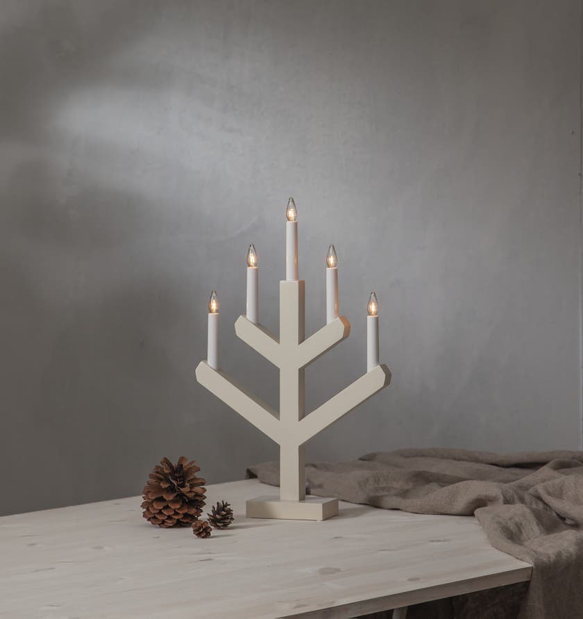 Ljusstake Vinga 5-armad. Den perfekta ljusstaken till jul, adventsljusstaken är tillverkad i trä och målad i beige. Klassisk ljusbild för att skapa den perfekta julstämningen i fönster eller på en skänk.