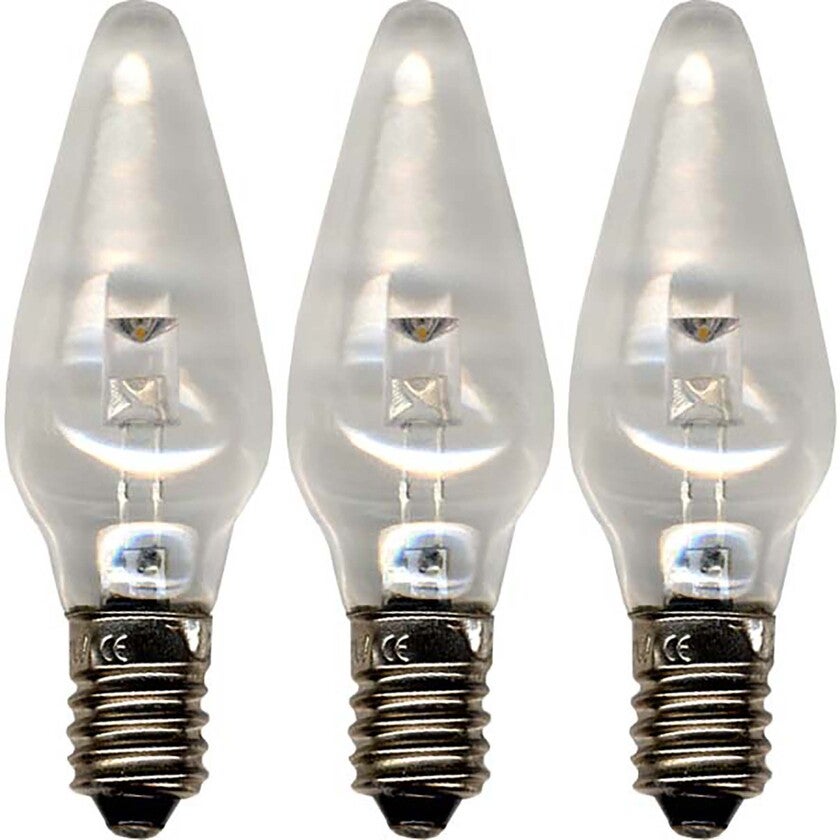 Reservlampa LED 3-pack Sparebulb Universal med klart glas och E10 sockel, 10-55V. Denna produkt passar till ljusstakar med 4-25 lampor och stickkontakt. För inomhusbruk.