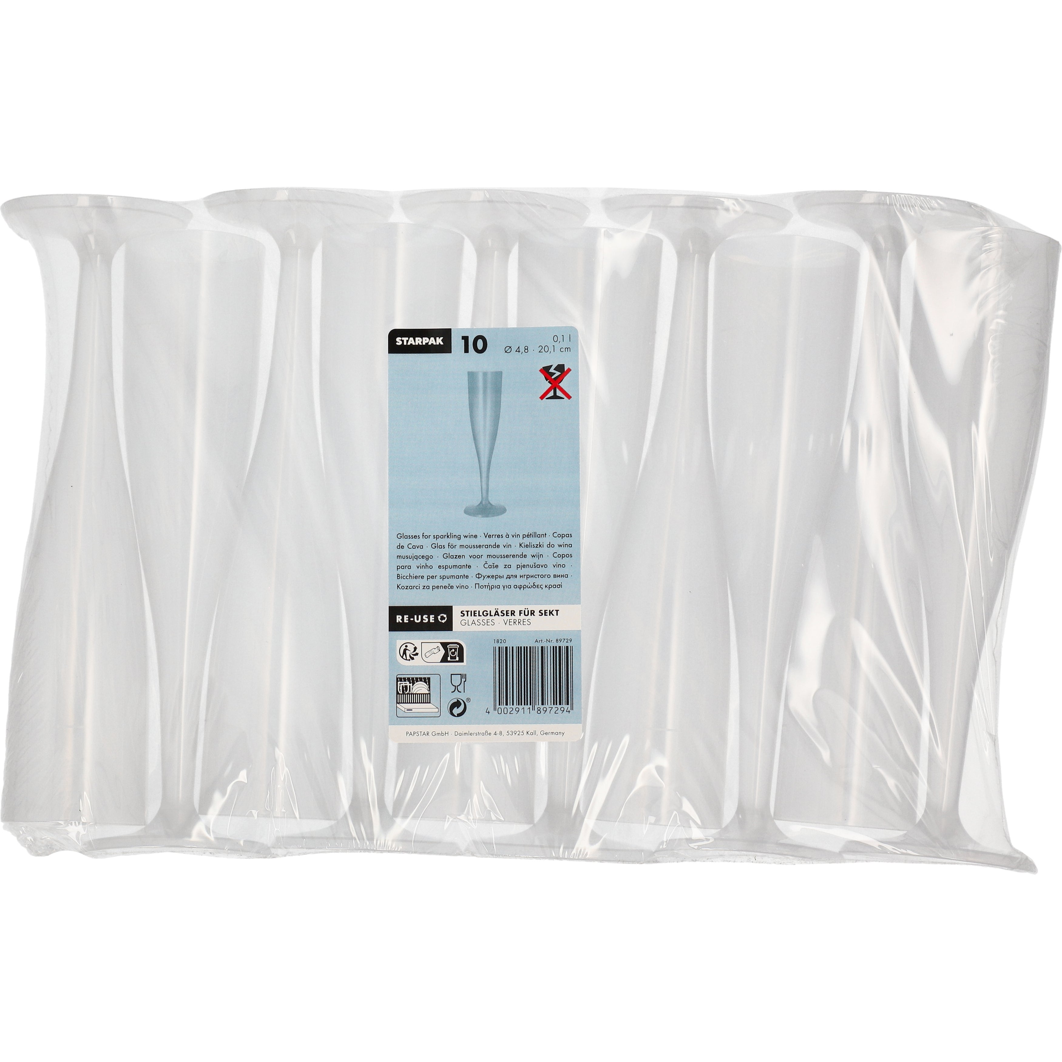 Flergångsglas i plast som är ett miljövänligare alternativ än engångsglas men minst lika användbara. Snygga flergångsglas för bubbel och mousserande vin. Perfekt för restaurangen, festen eller husvagnen. Tål att diskas i maskin upp till 60 °C.
