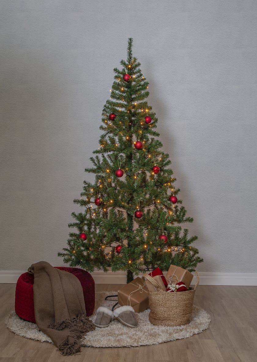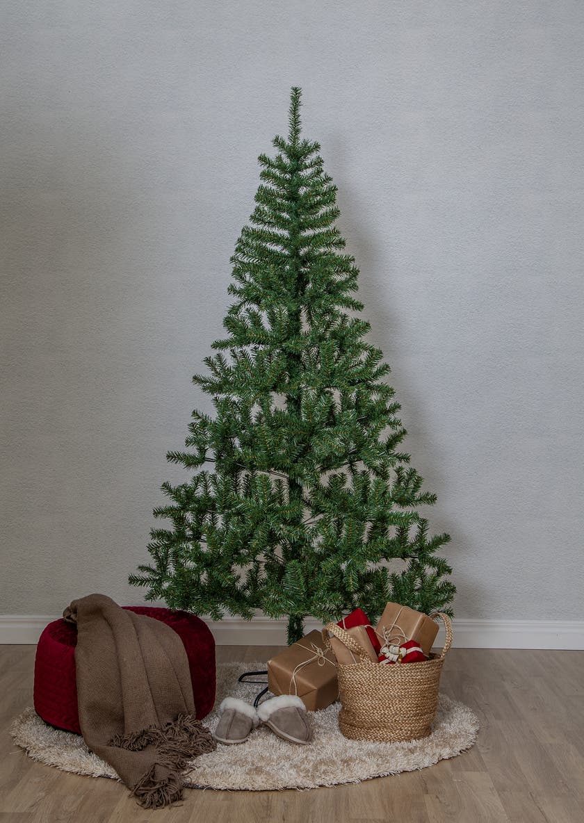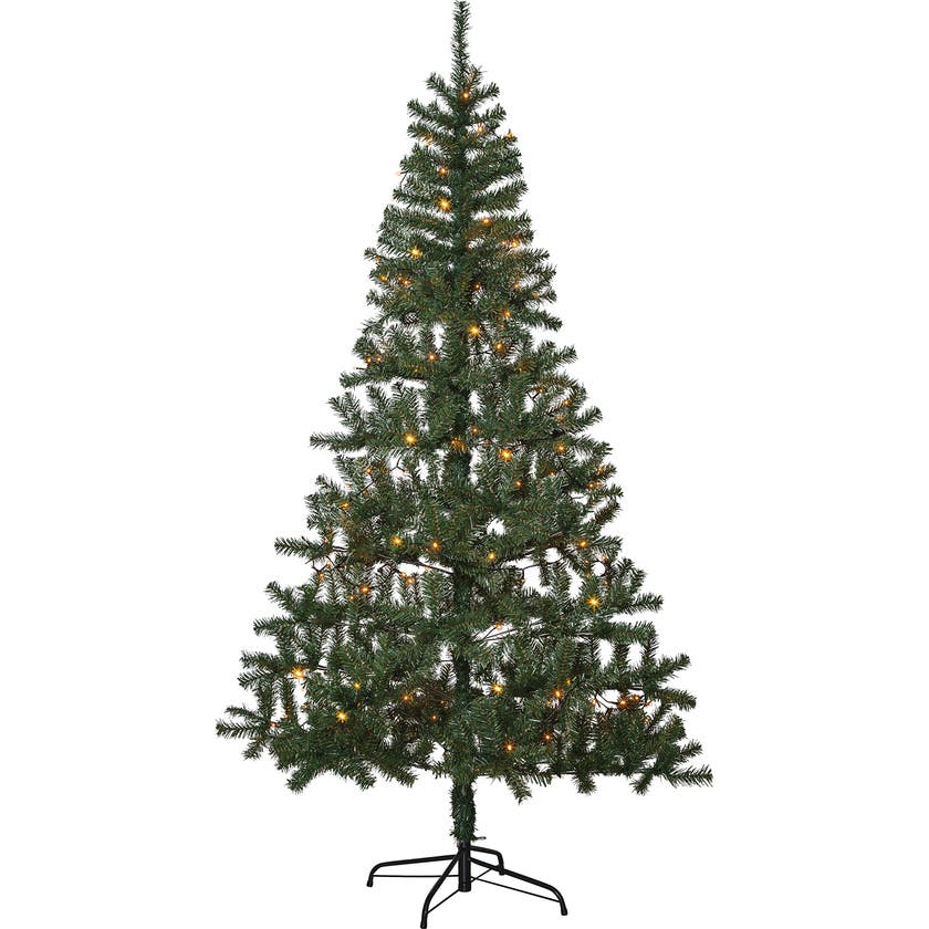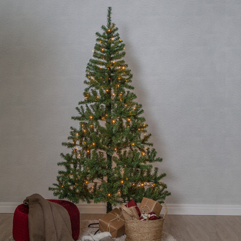 Dekorativa julgranen LED Alvik 2100 mm - konstgran med bipackad 180-ljusslinga i Golden warm white. Granen går bra att använda både med och utan slinga.