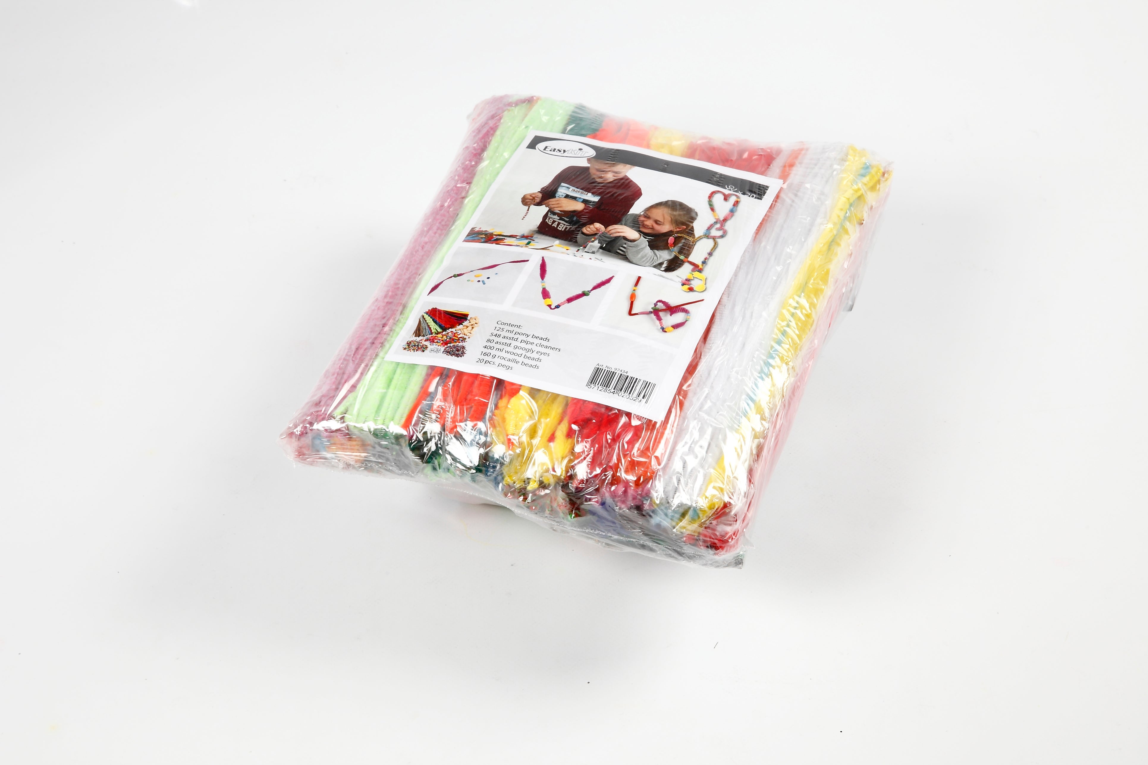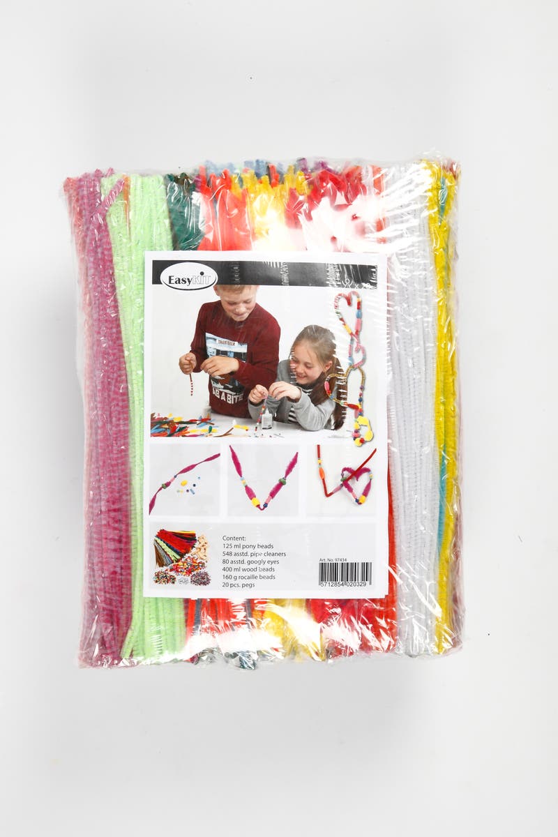 Klämmor och piprensare i sorterade färger. Set med material till fina och färgglada dekorationer av piprensare, pärlor, rullögon och miniklämmor - räcker till minst 20 barn.