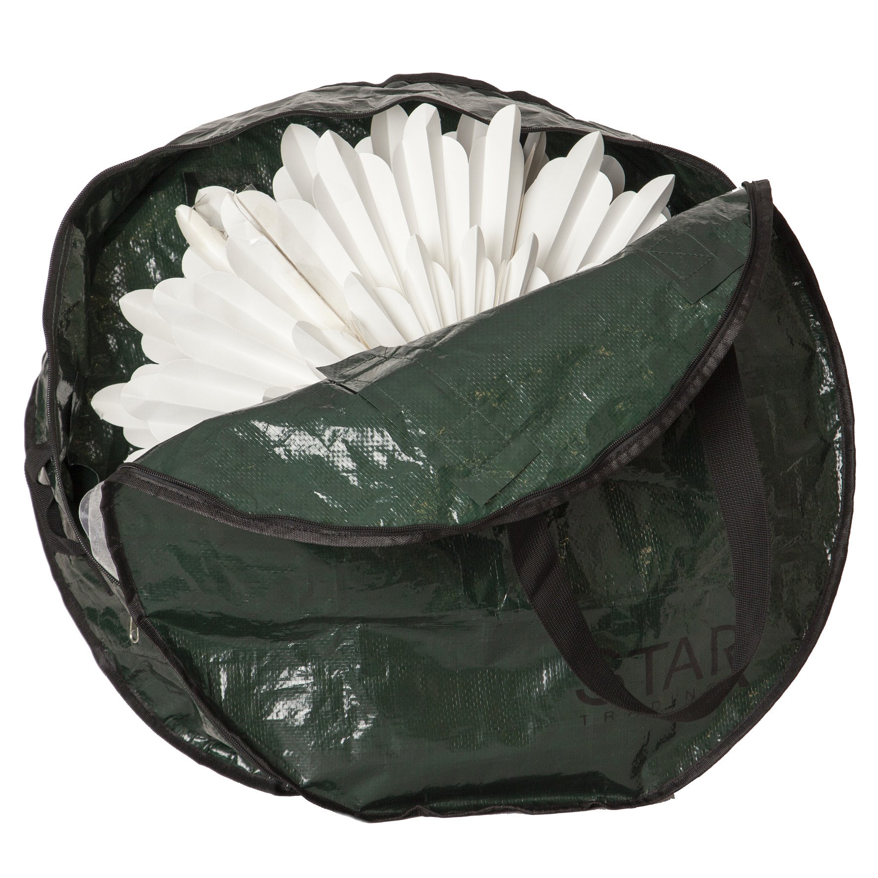 Skydda alla dina adventsstjärnor, kransar och girlanger mellan säsongerna med denna praktiska förvaringsväskan. Denna förvaringsbag är rund i formen med handtag för att enkelt transprotera och förvara adventsstjärnan.