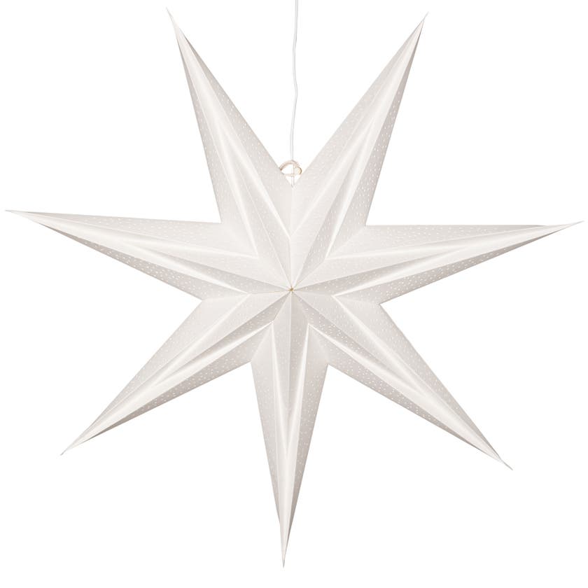 Pappersstjärna Holly från Star Trading är en vacker, vit adventsstjärna i papper som skapar en mysig julstämning i hemmet. Stjärnan har ett dekorativt hålmönster som sprider ett vackert sken. Placera den i ett fönster eller luta den mot en vägg för att förstärka julkänslan. Produkten är FSC®-märkt för ett hållbart val. Upphängning och ljuskälla säljs separat.