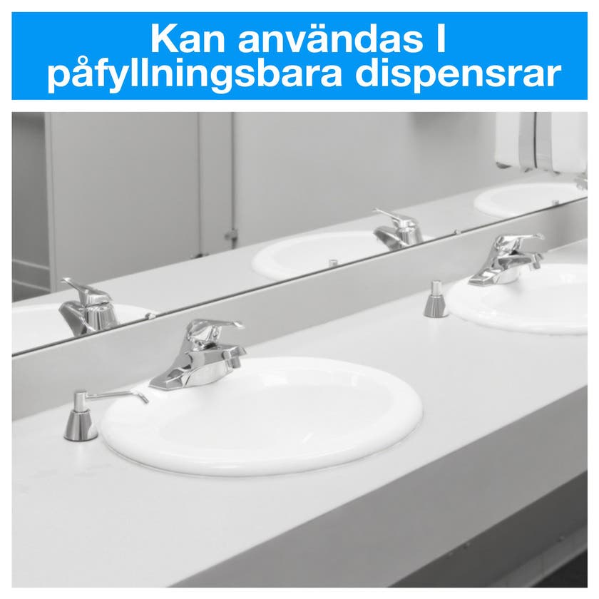 Instruktioner för hygienisk påfyllning: Påfyllningsbara dispensrar kan förorenas av bakterier. Att fylla på tvål i en halvtom dispenser ökar risken för bakterietillväxt vilket minskar den positiva effekten av handtvätt. Slutna system ger bäst hygien.