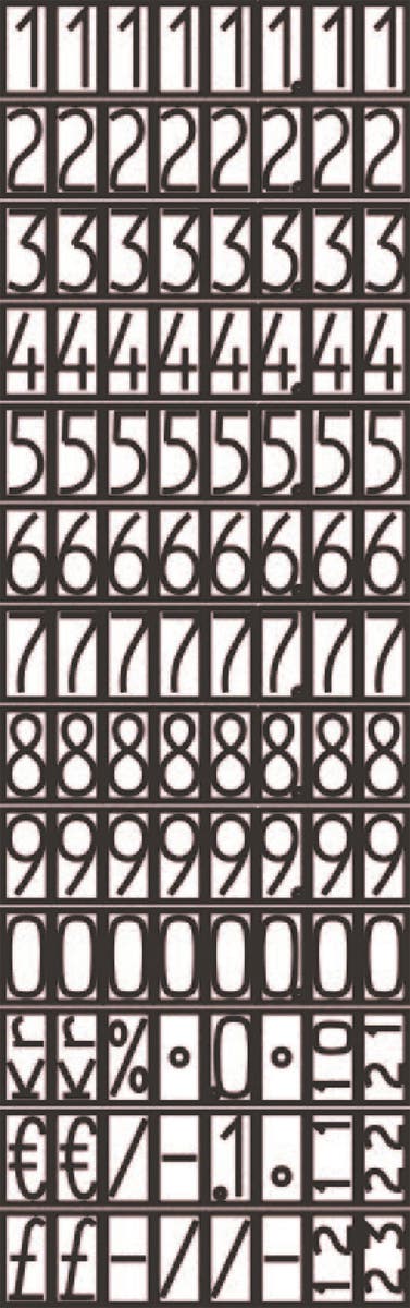 Prismärkaren Avery 826 26x12 kan skriva upp till 8 alfanumeriska tecken på en rad. Du kan skriva ut:
