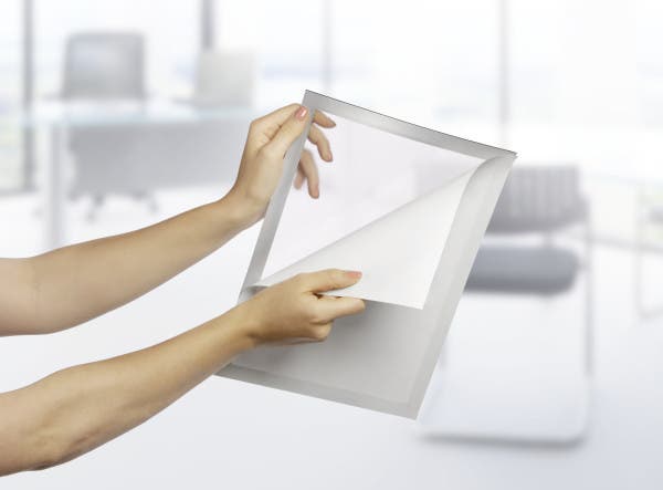 Använd självhäftande DURAFRAME® inforamar för att visa och presentera kampanjerbjudanden, öppettider, skyltar och annan tillfällig eller mer varaktig information på ett professionellt sätt. Enkelt att sätta i eller skifta budskap genom att lyfta framsidan med magnetstängning. Lätt att sätta upp - utan verktyg eller andra tillbehör - på fasta och släta ytor. Snyggare och enklare hantering än t ex tejp, häftstift eller häftklammer.