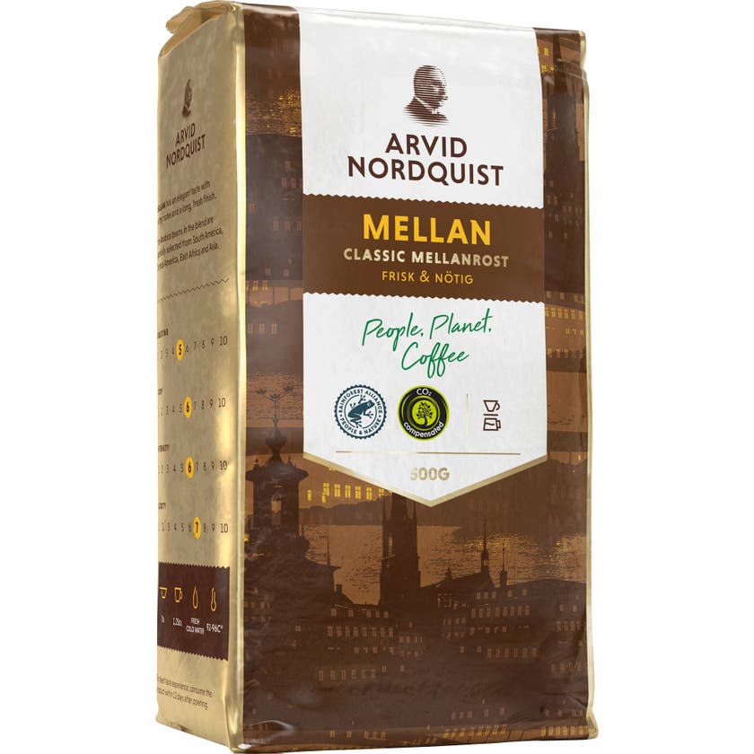 Kaffe Mellan Malet från Arvid Nordquist. Frisk & Nötig. Malet filterkaffe, mellanrostat med frisk och nötig smak.