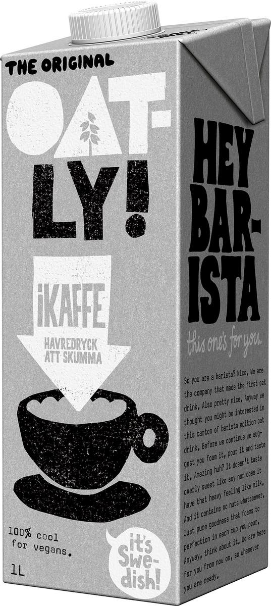 iKaffe från Oatly är framtagen speciellt för att funka i kaffe, som du kan skumma och som smakar helt fantastiskt i kaffet. Det är en havredryck med fyllig rund smak som funkar perfekt att skumma. För den allra godaste kaffelatten. Men naturligtvis funkar den lika bra att dricka rakt upp och ner.