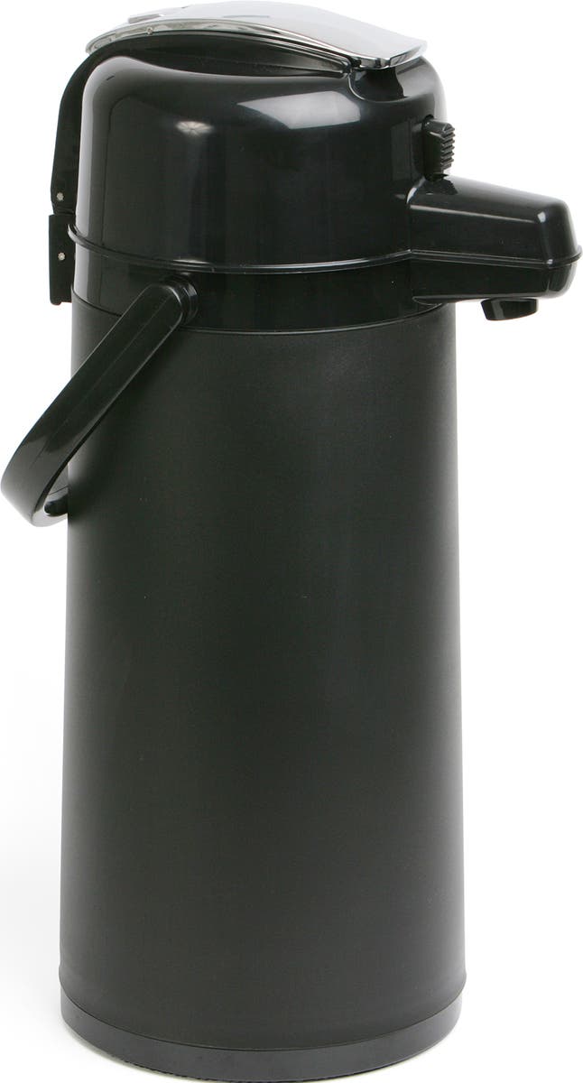 En termoskanna med pump som passar perfekt på picknicken, till fritidsaktiviteten, festen eller på möten där många vill ha något varmt eller kallt att dricka. Pumptermos med glasinsats som håller värmen bra.