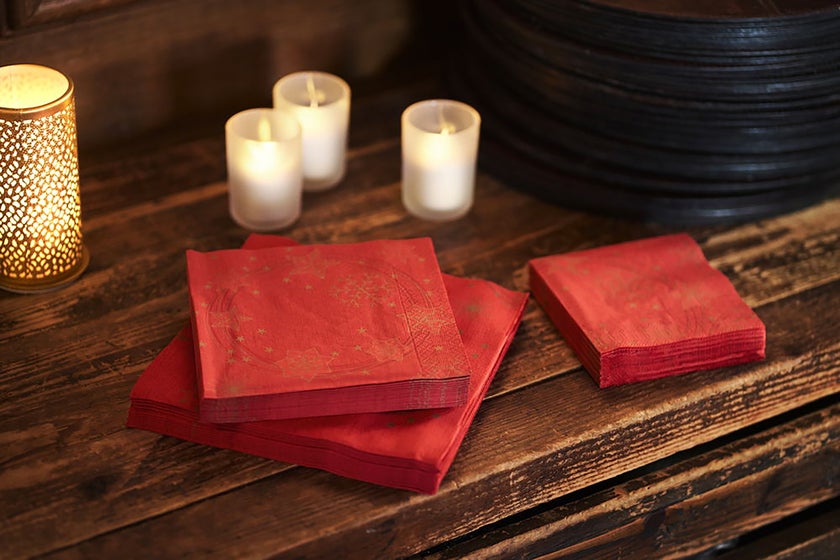 Servetter i härliga färger och julmönster som gör dukningen vacker och extra festlig. Gör en fin vikning för att förstärka det festliga.