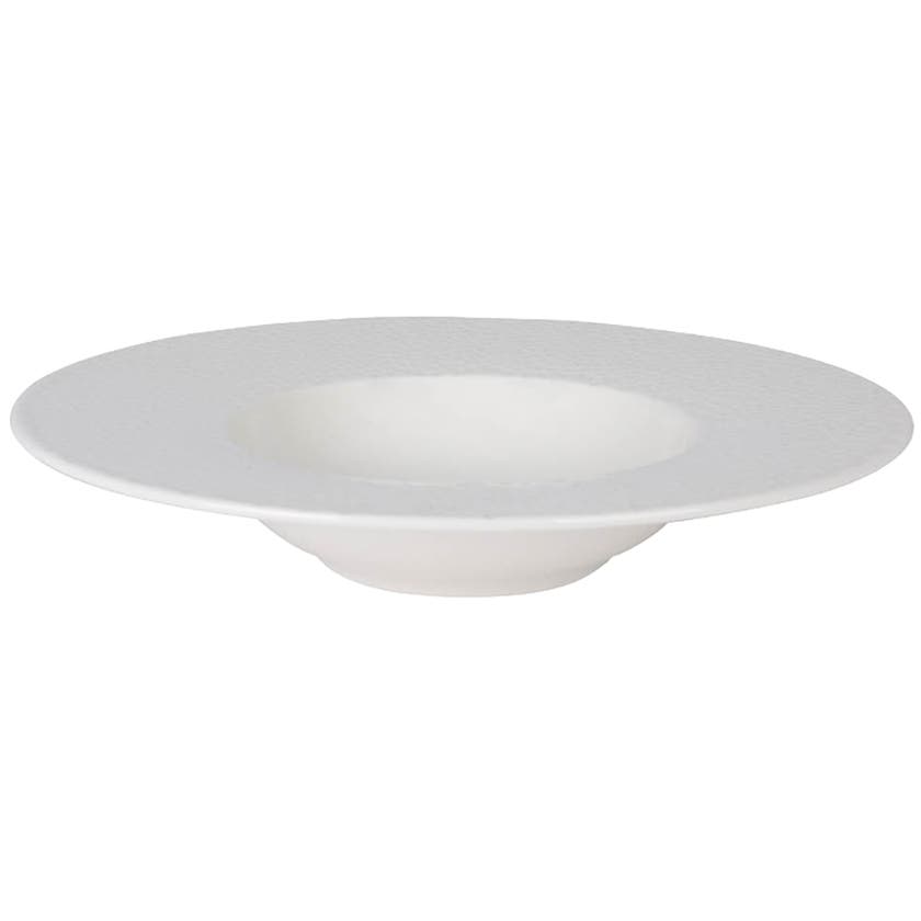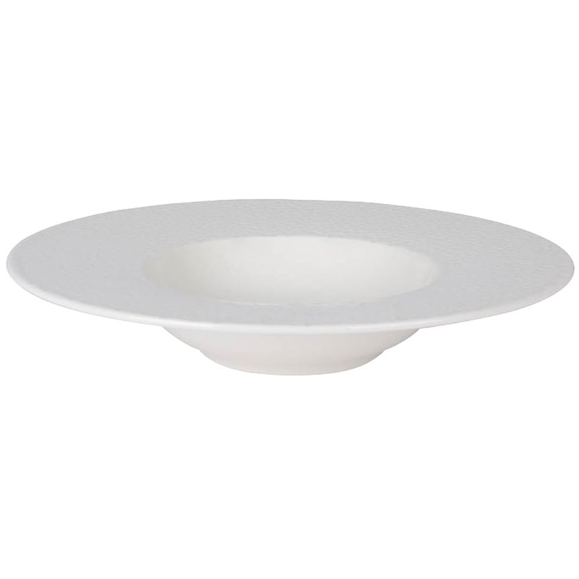 Wellington är en stilren och elegant djup tallrik designad av Blocho FRANKHUGO. Tallriken har en vacker relief som påminner om hamrad plåt, vilket ger designen det där lilla extra. Denna djupa tallrik med bred kant är perfekt för pasta och sallad, både till vardag och fest.