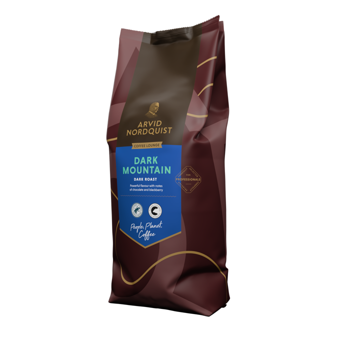 Kaffet Dark Mountain från Arvid Nordquist har en kraftfull och kryddig smak. Balanserad lång eftersmak med ton av mörka bär. Framtaget av Arabica-bönor av högsta kvalitet. De köps när de är som färskast och rostas sedan långsamt för att säkerställa att smakerna utvecklas fullt ut.