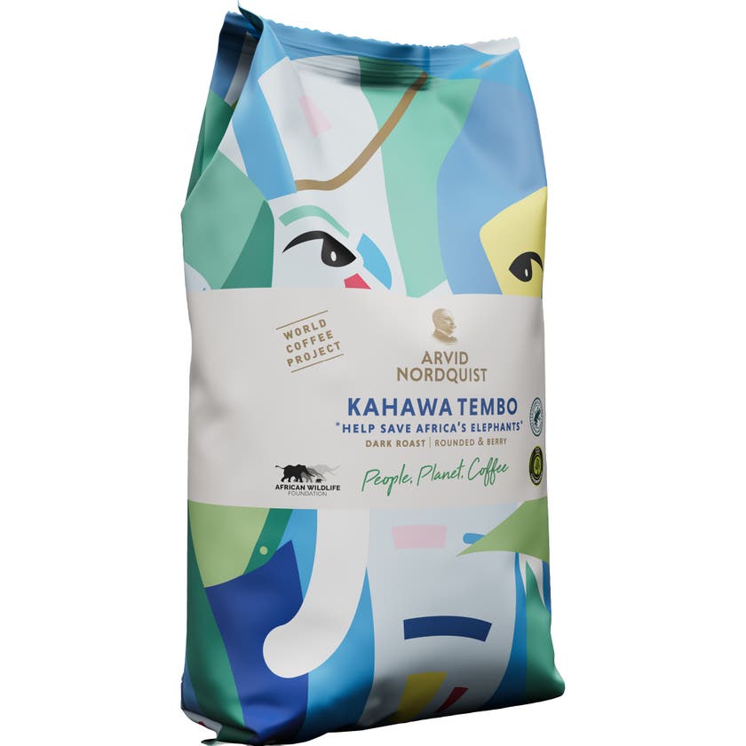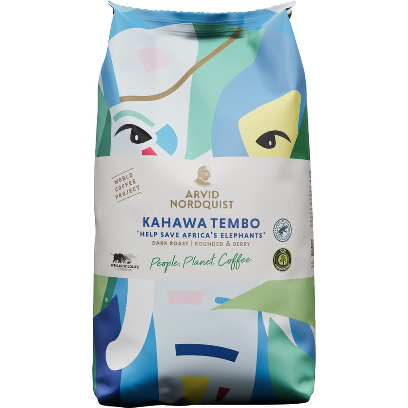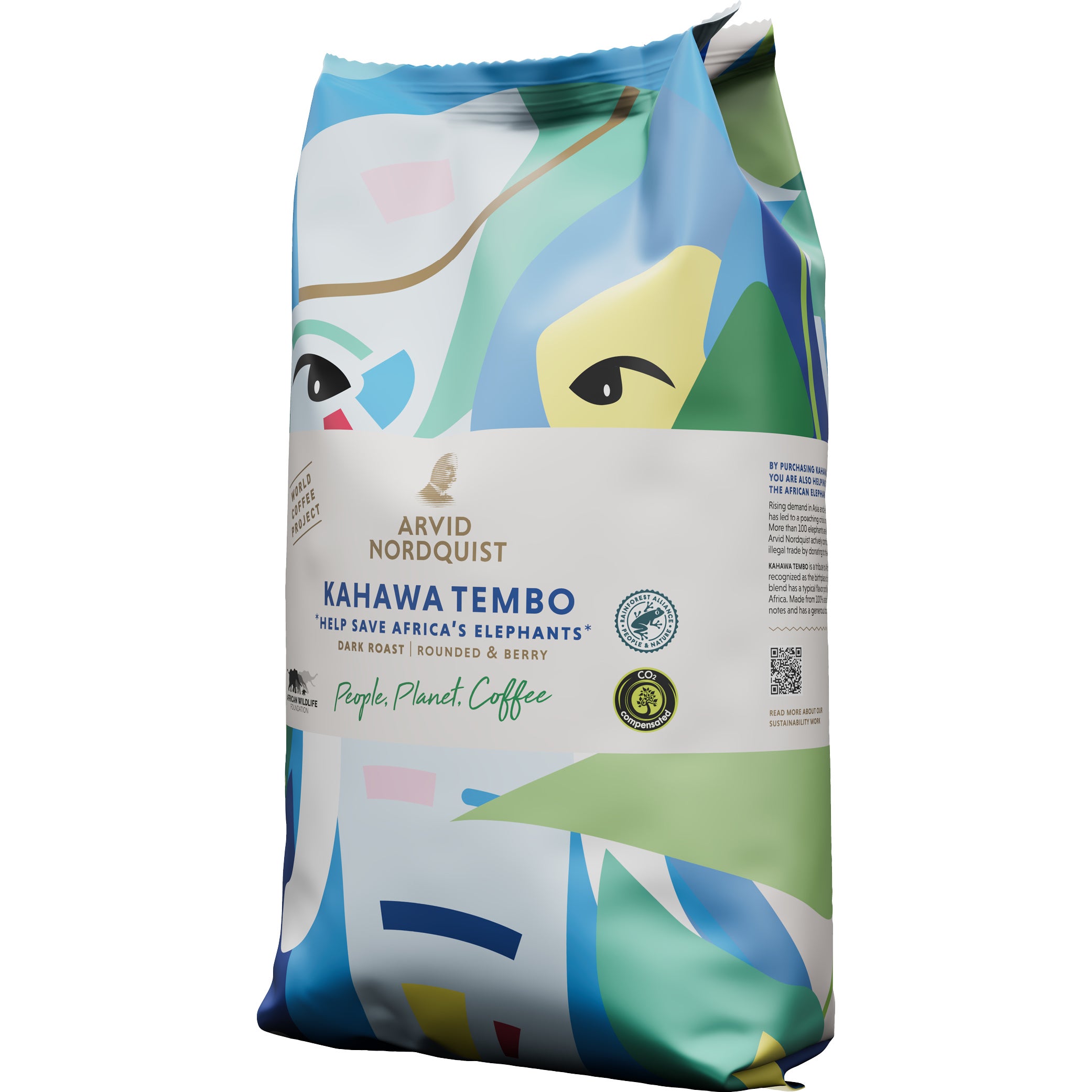 Kaffe hela bönor - Kahawa Tembo mörk rostat från Arvid Nordquist. Rund & Bärig. Generös och rund smak. Tydliga toner av röda bär och lång eftersmak. Arvid Nordquist bidrar till räddningsprojekt genom att donera pengar till African Wildlife Foundation. Kahawa Tembo, vår mörkt rostade afrikanska blandning, med rund och bärig smak, är en hyllning till vilda djur och speciellt den afrikanska elefanten.