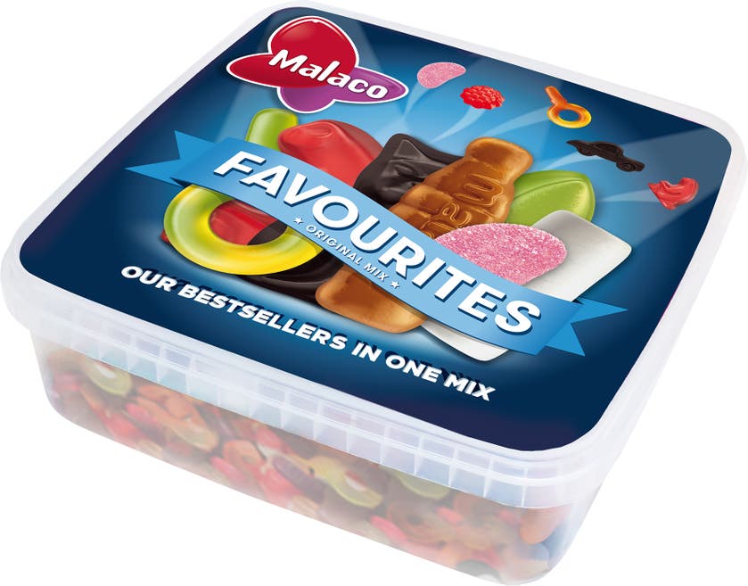 Med Malaco Favorites Original får du en härlig mix av Malacos mest populära godissorter. Välj mellan söta, syrliga och salta godisar. Med denna mix blir du alltid en vinnare! Perfekt på konferensbordet, personalfesten eller barnkalaset.