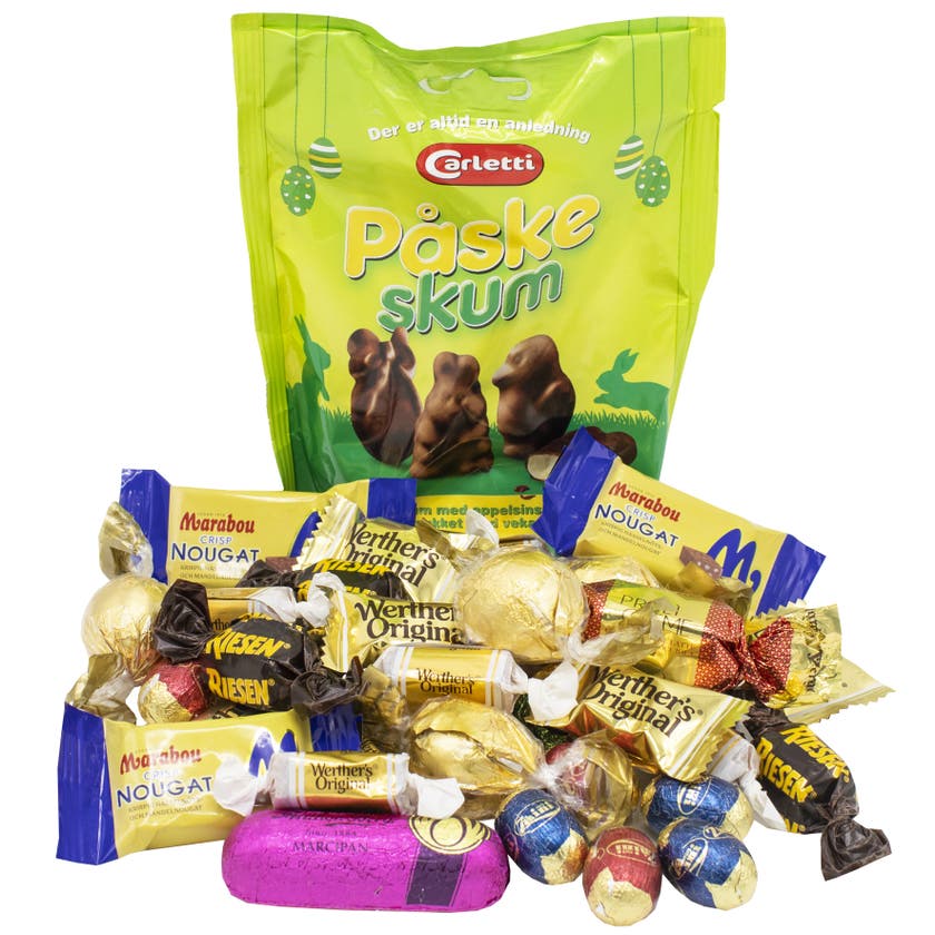 Lyxigt premiumägg fyllt med påskgodis av mer exklusivt och vuxet slag. Det stilfullt utformade “ägget” innehåller enbart inslagna produkter som signalerar lyx och flärd – ett riktigt premiumägg att ge bort eller unna sig själv.