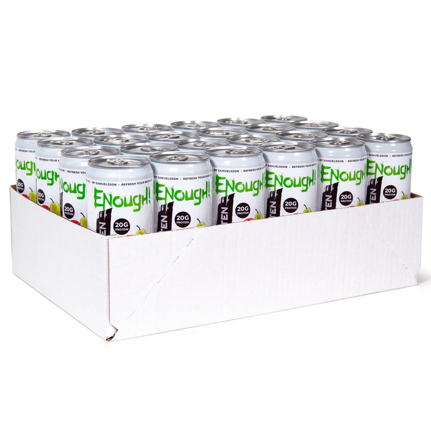 Upptäck det härliga proteinvattnet från Enough! En törstsläckare som kombinerar det bästa av två världar – lättupptagligt protein och härlig smak, helt utan kolhydrater eller socker! Med hela 20 g protein per burk hjälper den dig till snabb återhämtning efter träning eller när du bara behöver ett extra proteintillskott under dagen.