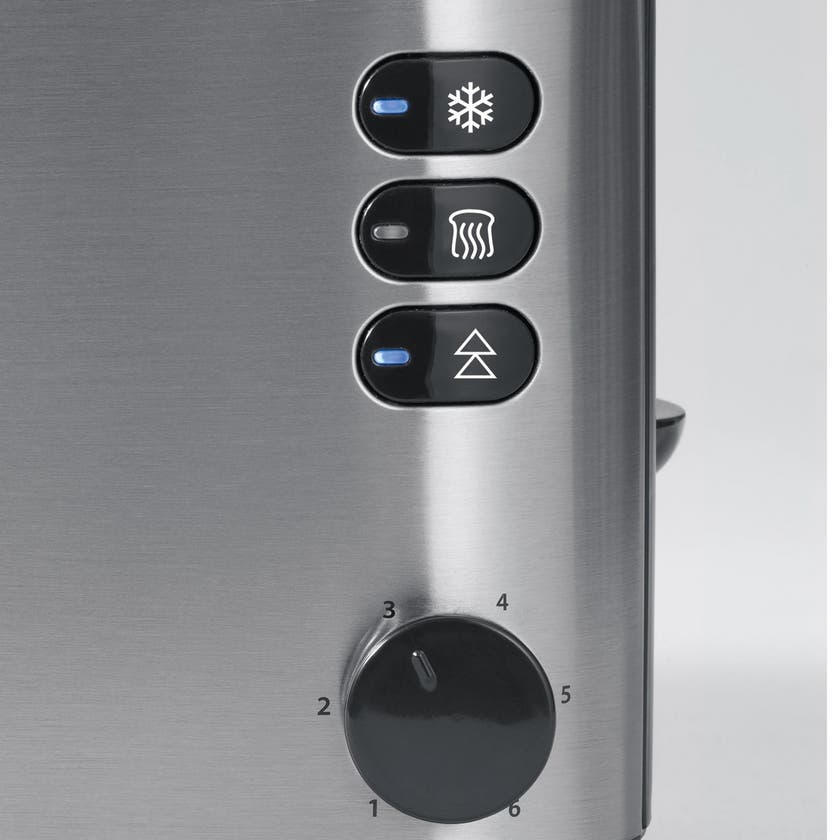 Severin AT2509 är en stilren brödrost i rostfritt stål med plats för fyra skivor. Den passar perfekt för större hushåll och ger jämn rostning tack vare elektronisk kontroll och temperatursensor.