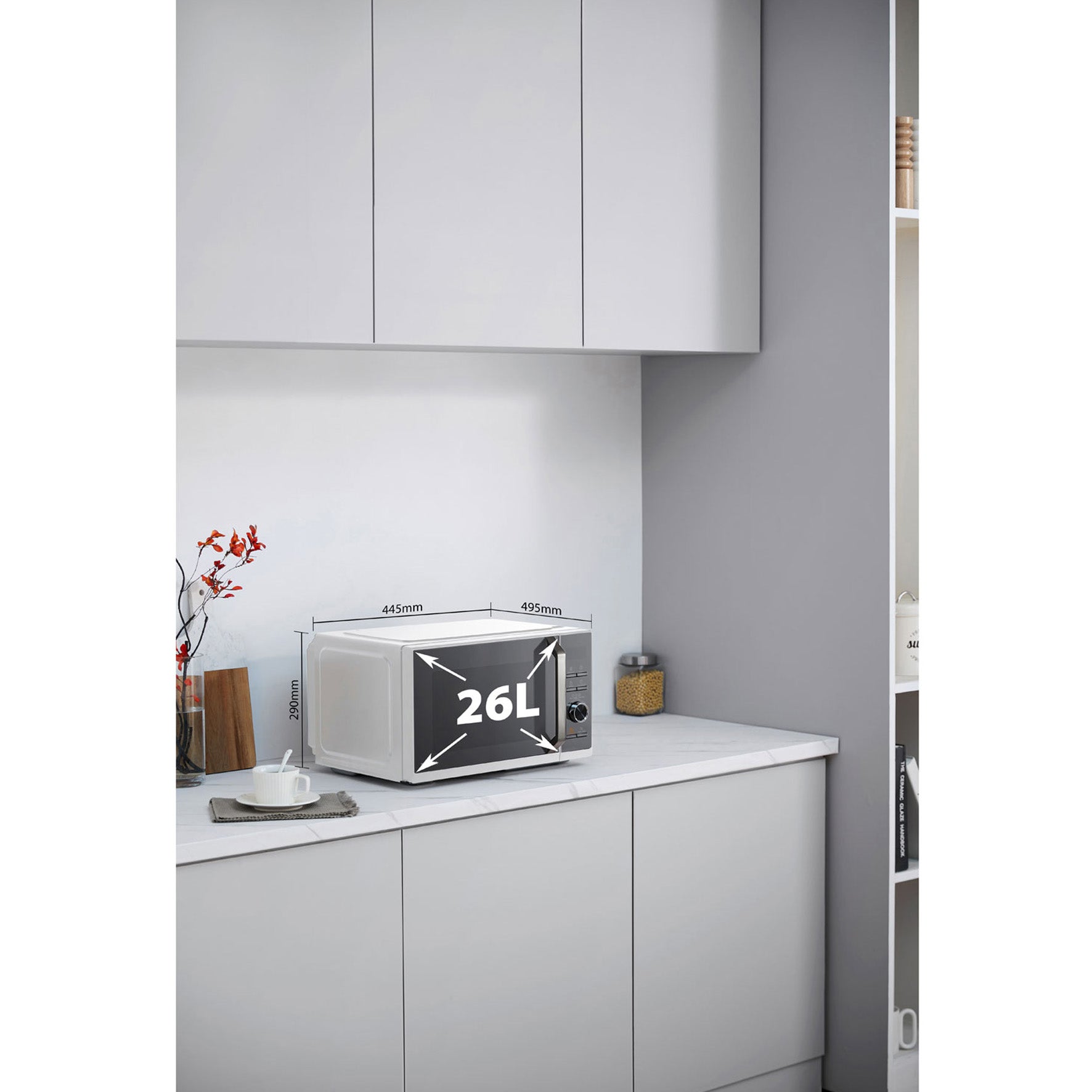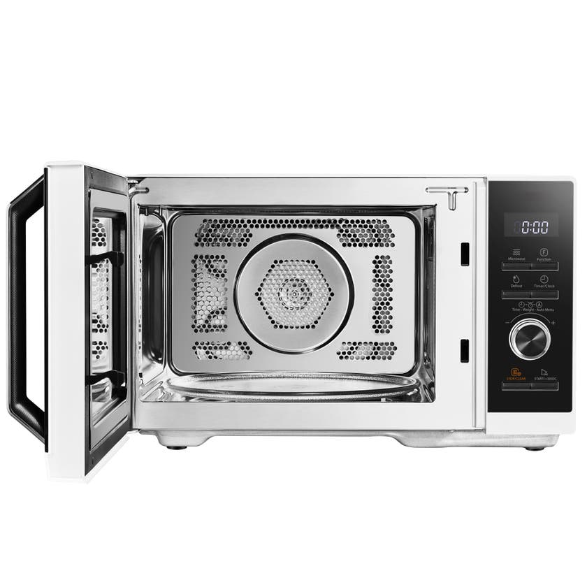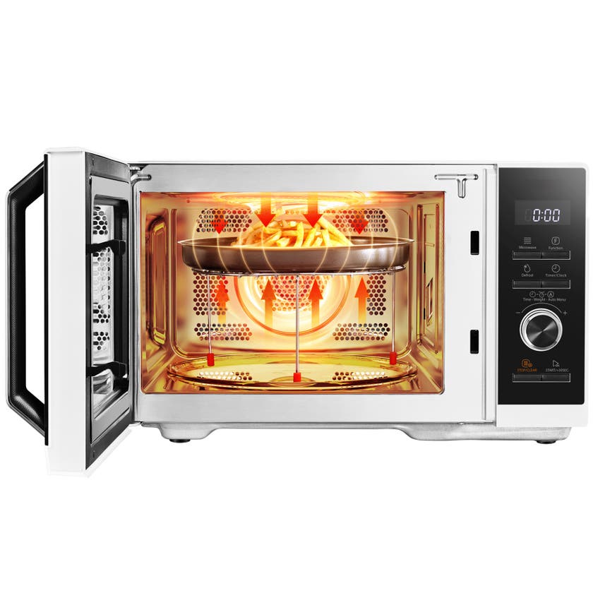 Med Toshibas mångsidiga mikrovågsugn kan du laga nästan allt du behöver i köket. Denna modell erbjuder fyra funktioner i en – upptining, airfryer, grill samt klassisk mikrovågsugn. Trots att utsidan har blivit mindre för att spara plats i köket, rymmer insidan fortfarande hela 26 liter.