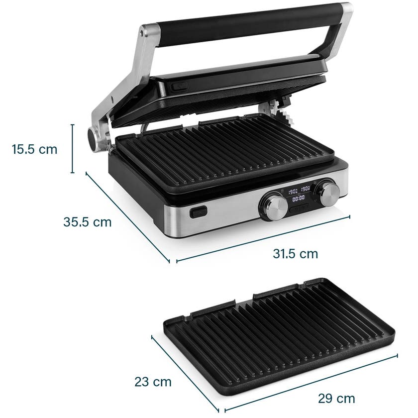 Princess Digital Grill Master Pro 2000W – semi-professionell elgrill som gör dig till grillmästare hemma! Perfekt för paninis, kött och grönsaker – använd som kontaktgrill eller bordsgrill med 180° öppning.