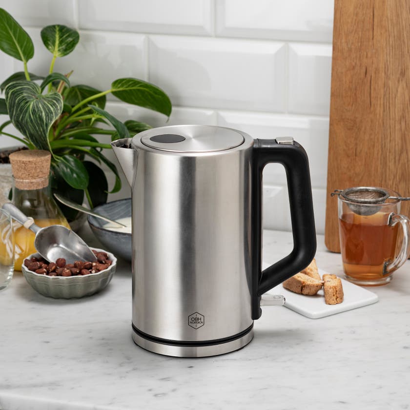Bronx vattenkokare från OBH Nordica kombinerar effektivitet med en stilren design i rostfritt stål som passar perfekt i köket. Med en effekt på 2200 watt kokar Bronx snabbt upp vattnet, och kannan har en kapacitet på 1,7 liter. Vattenkokaren är enkel att använda med praktiskt handtag, locköppningsknapp och en blå signallampa som visar när vattnet kokar. Säkerhetsfunktioner som skydd mot torrkokning och automatisk avstängning ingår, och kannan kan roteras 360 grader på basplattan för extra smidighet.