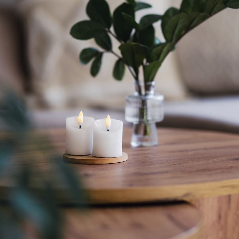 LED blockljus 2-pack Flamme. 2-pack votivljus med mycket naturtrogen låga som lyser med varmvitt sken. De har en inbyggd timer som lyser i 6 timmar. För inomhus användning.