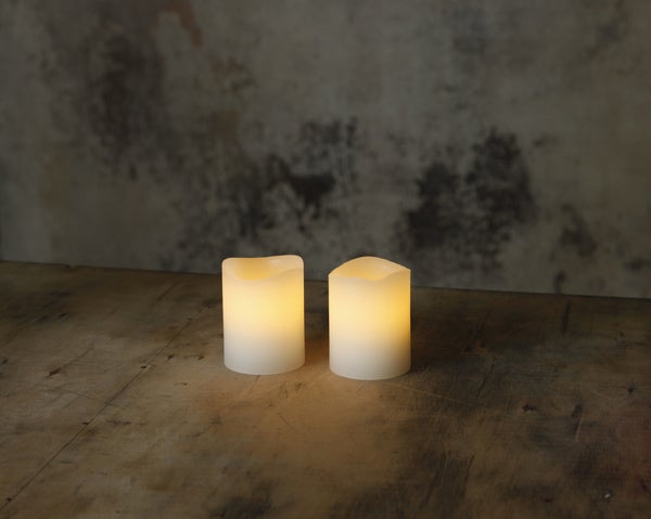 Stilrent 2-pack batteridrivna blockljus i vax LED med fina vågkanter. Perfekta för att lysa upp i hemmet och skapa mysig stämning och med en naturtrogen låga som lyser upp med varmvitt sken. Den inbyggda timern gör det lätt att ställa in när ljusen ska lysa. Endast för inomhusbruk.