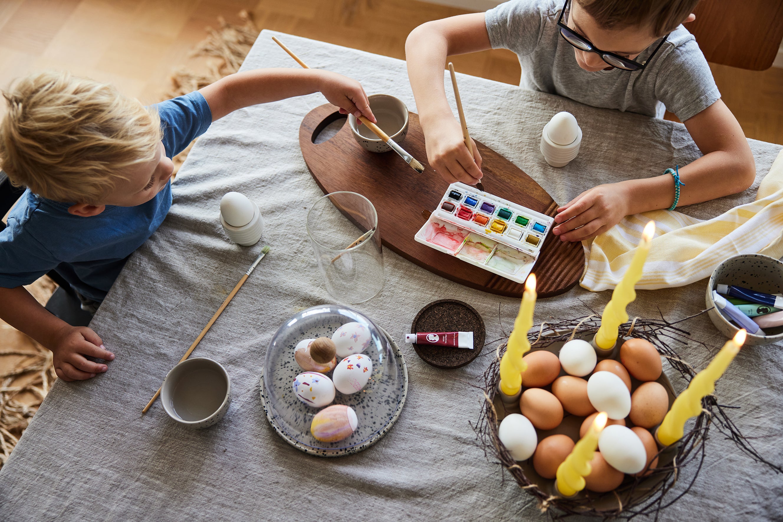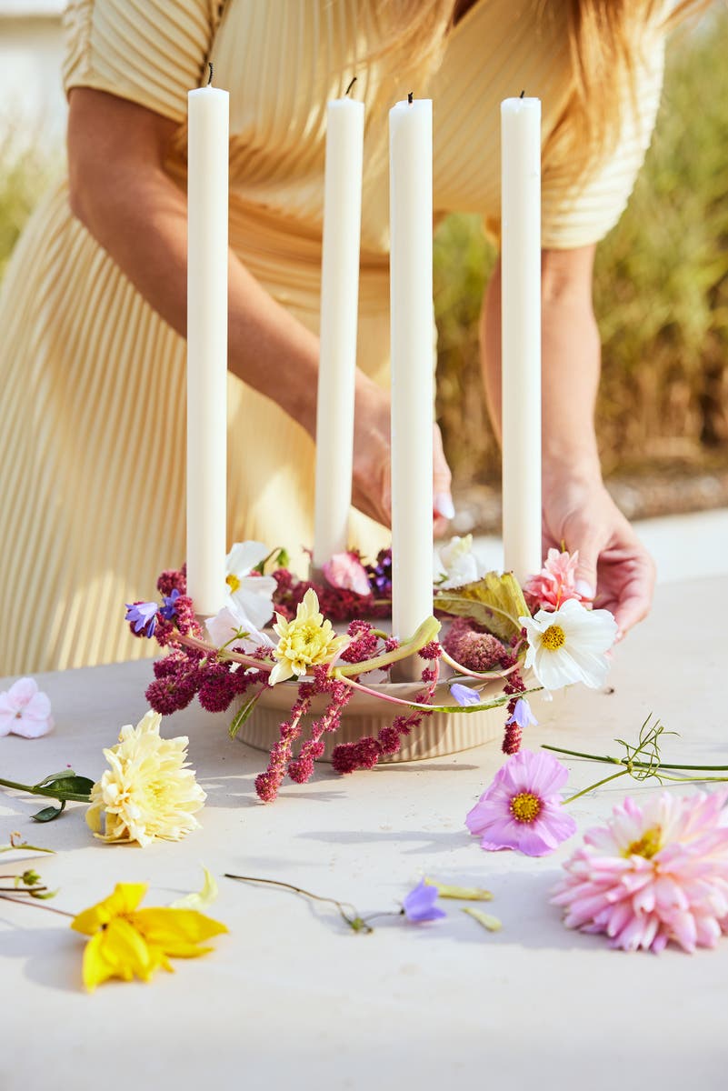 Fatet med fyra ljus kan med fördel dekoreras efter säsongens alla högtider men är även fin som den är.
