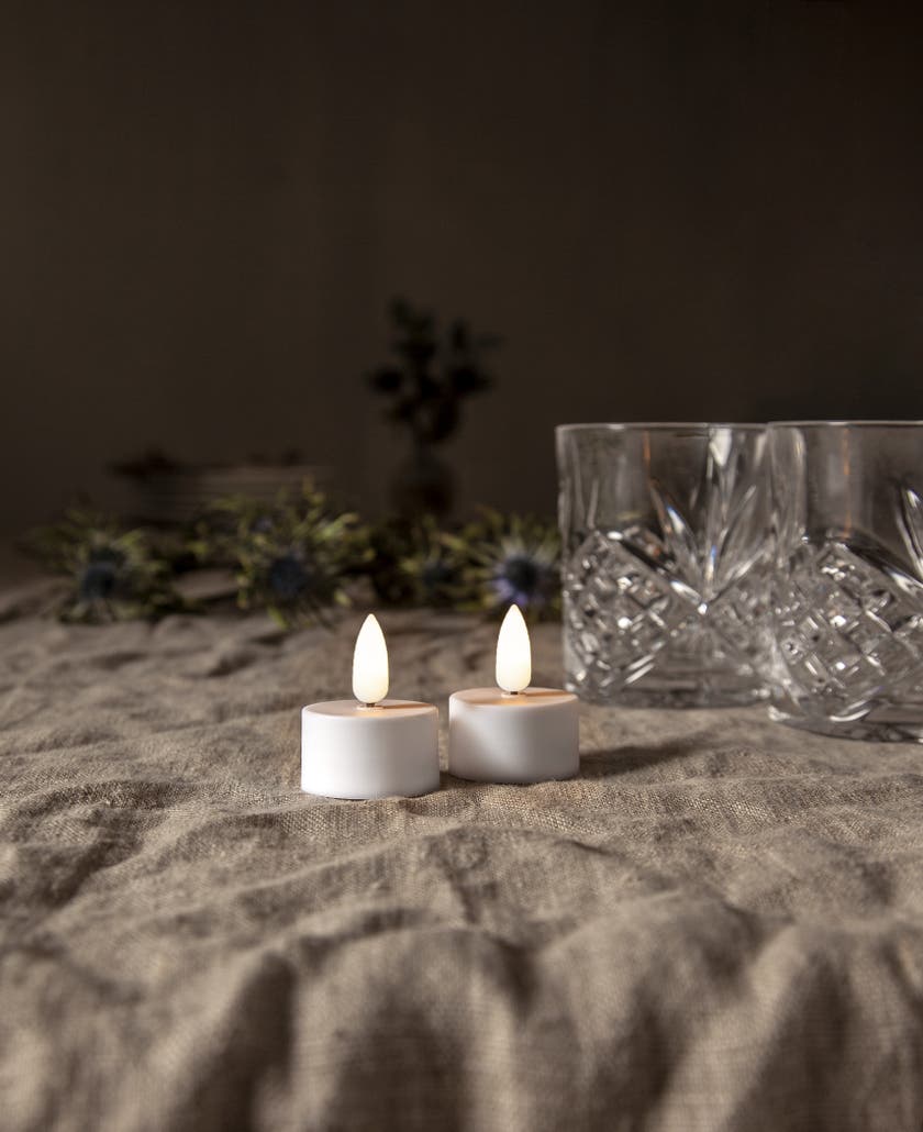 Värmeljus LED Flamme 2-pack. 2-pack värmeljus med en varmvit låga i serien Flamme. Med inbyggd timer.