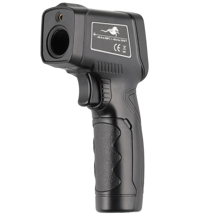 Kompakt infraröd termometer från Mustang. Temperaturområde från -50 till +580 °C. Särskilt lämplig för att mäta temperaturen i pizzaugnar. Indikering om temperaturen går över intervallet. Kan användas med både Celsius- och Fahrenheit-skalor.