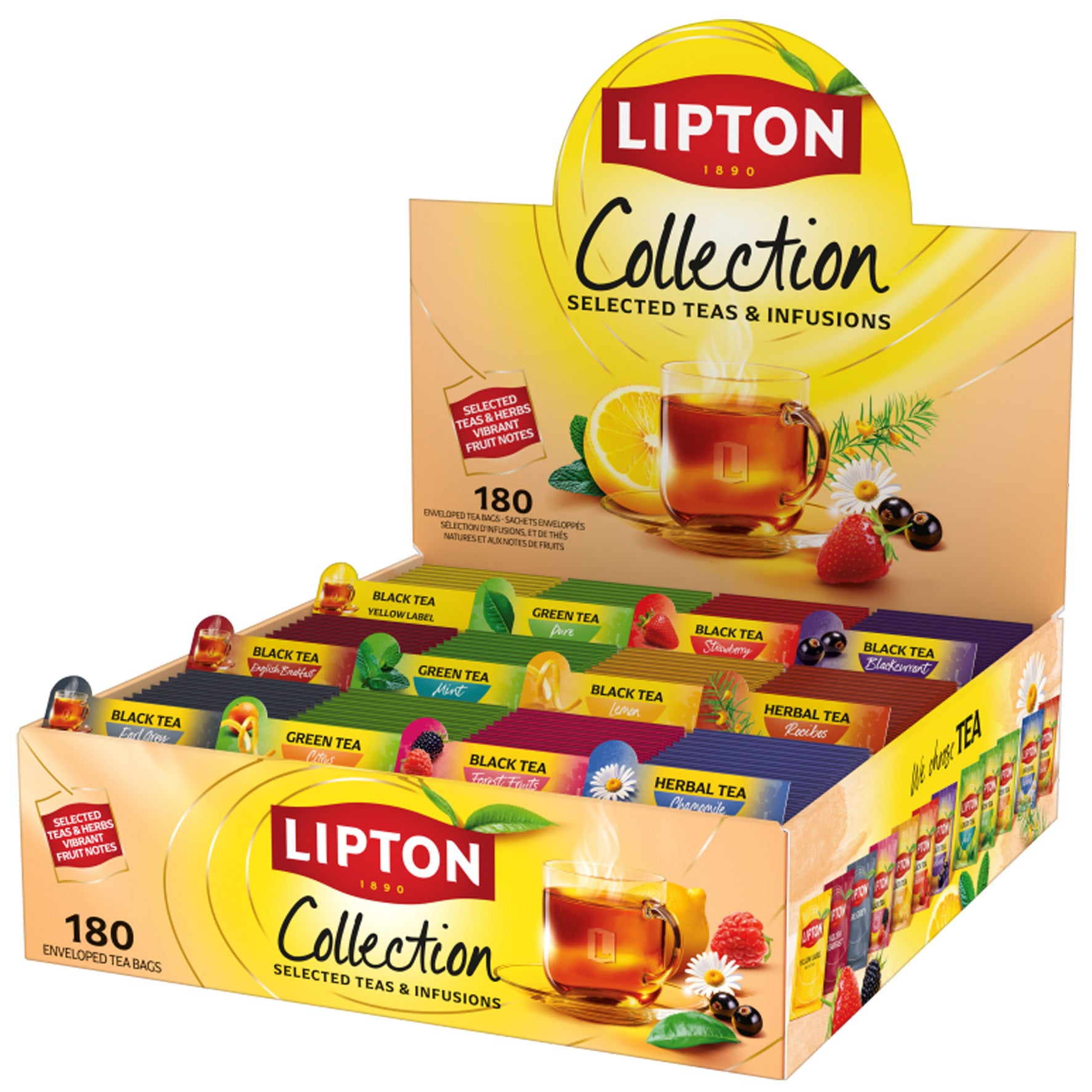 Lipton Collection displayförpackning är den perfekta lösningen för alla teälskare – praktisk, mångsidig och fylld med smakupplevelser. Här samlas ett brett sortiment av Liptons mest uppskattade tesorter, noggrant utvalda för att passa både vardag och speciella stunder. Varje tepåse är individuellt folieförpackad för att bevara arom och fräschör, så att varje kopp håller högsta kvalitet.