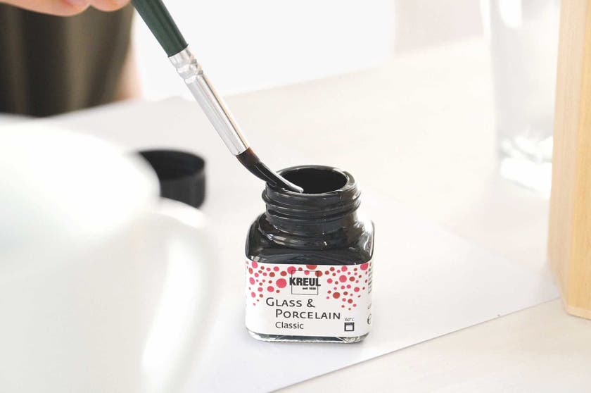Glas- och porslinsfärg i mixade färger. Vattenbaserad, blank och täckande färg till föremål av porslin, terrakotta och glas. När du har tröttnat på dina gamla transparenta glasföremål eller keramik föremål, ta och måla dem i ett snyggt mönster i glada färger. Skapa udda och roliga föremål som blir till fina presenter.