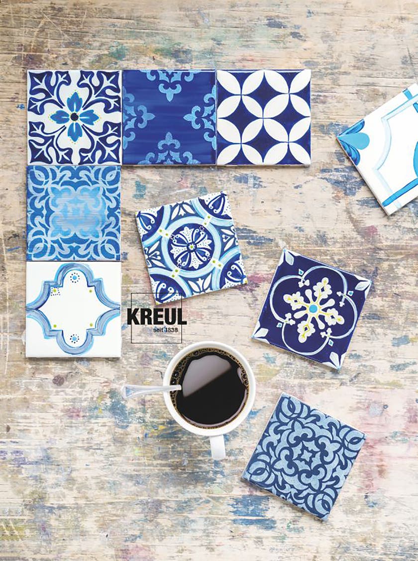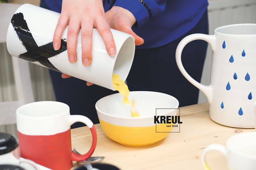 Sortiment med 6 starka färger samt 1 pensel. Penslas på rena och fettfria föremål. Låt torka.