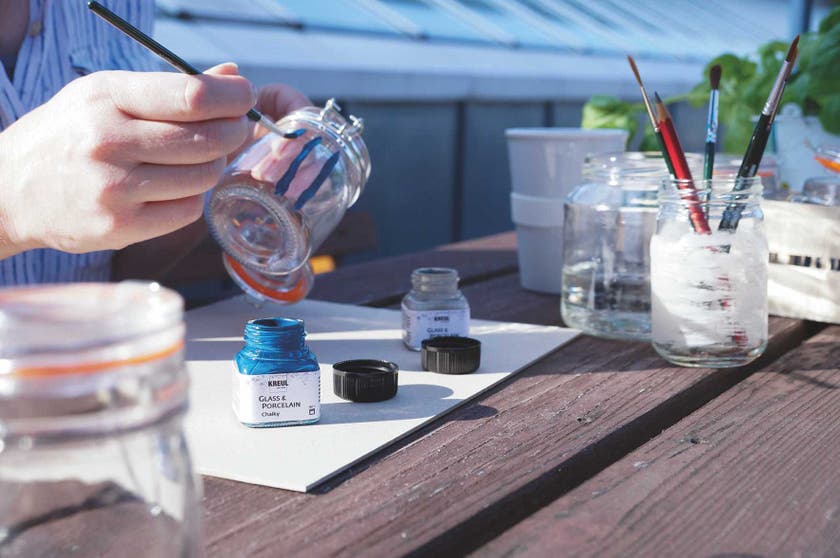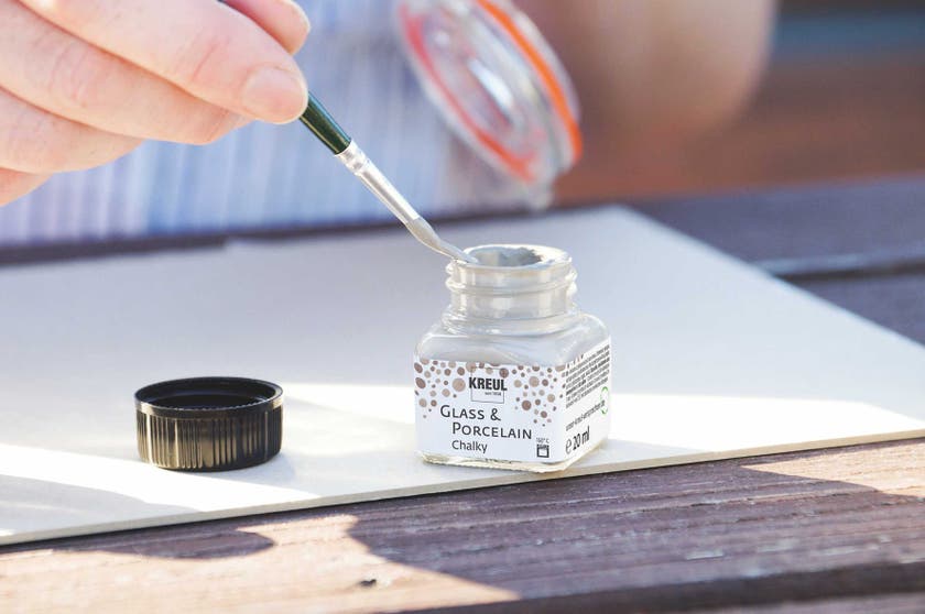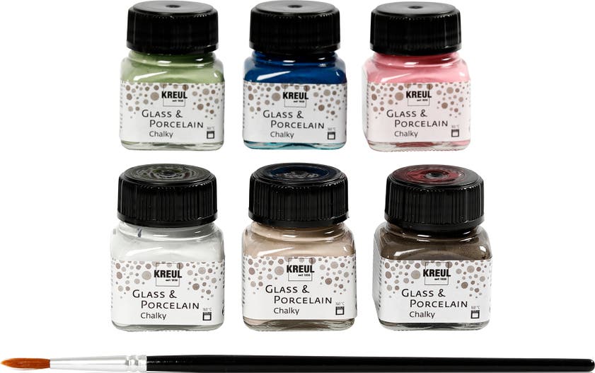 Glas- och porslinsfärg i mixade färger. Vattenbaserad, blank och täckande färg till föremål av porslin, terrakotta och glas. När du har tröttnat på dina gamla transparenta glasföremål eller keramik föremål, ta och måla dem i ett snyggt mönster i glada färger. Skapa udda och roliga föremål som blir till fina presenter.