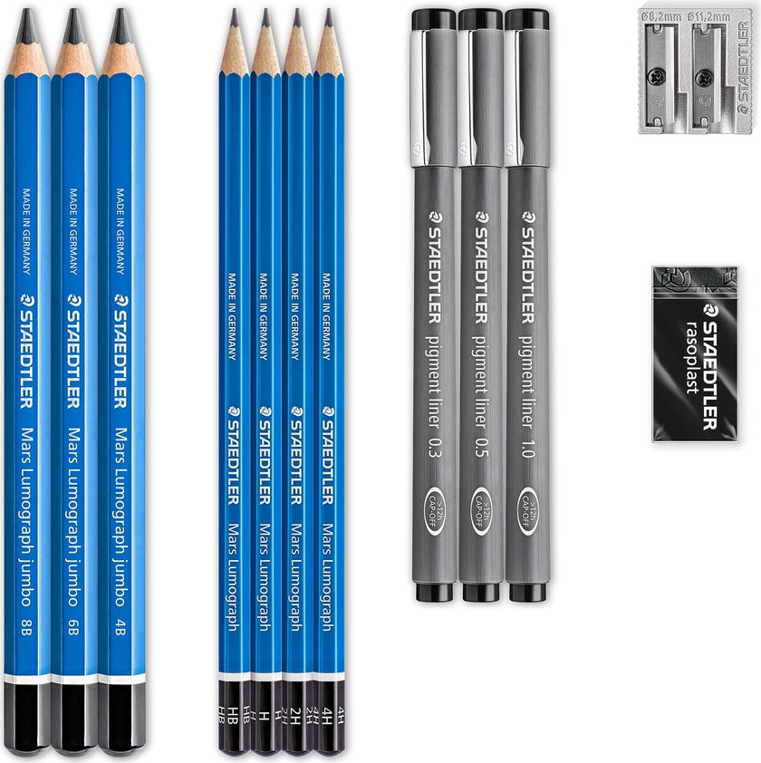 Det perfekta setet för detaljerade skisser och för hobbyteckningar. På baksidan av förpackningen finns steg-för-steg-instruktioner och detaljerade beskrivningar av applikationerna. Inklusive en mängd högkvalitativa STAEDTLER-produkter,