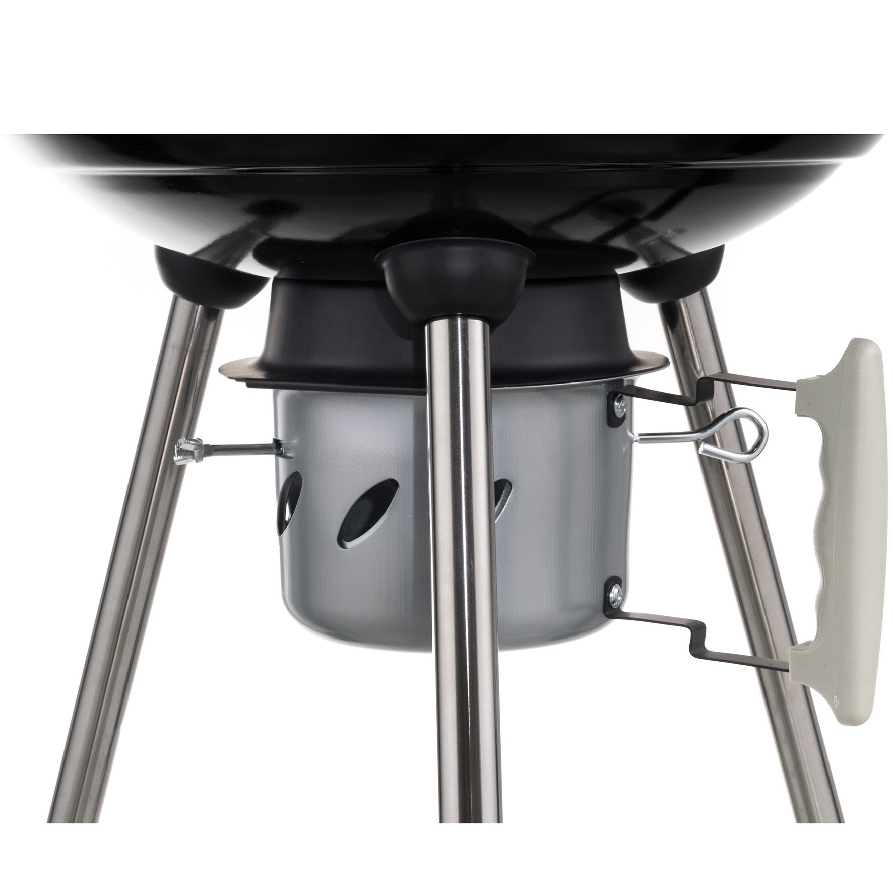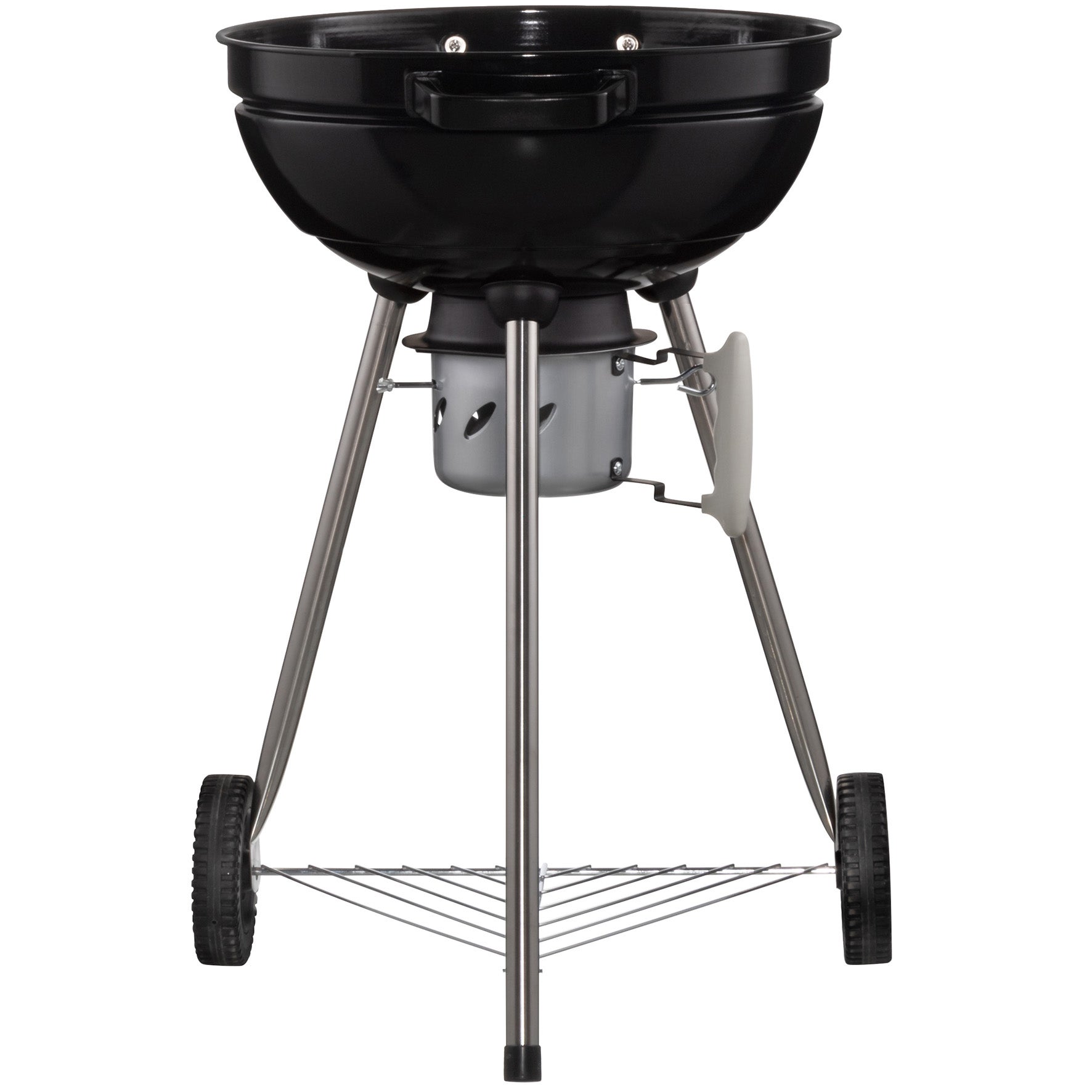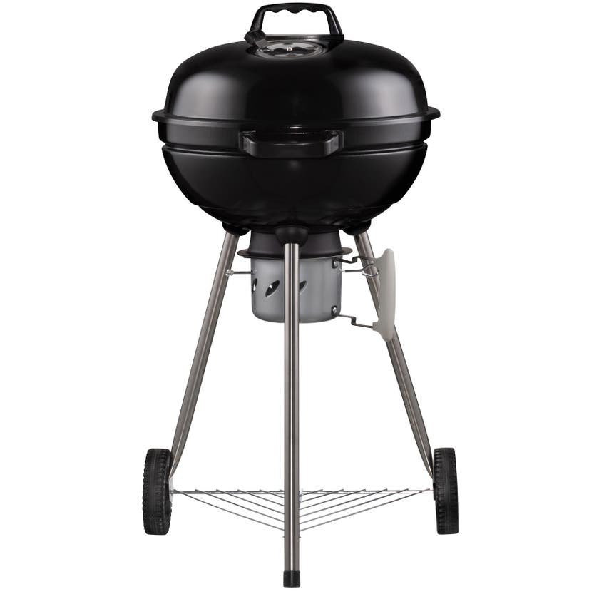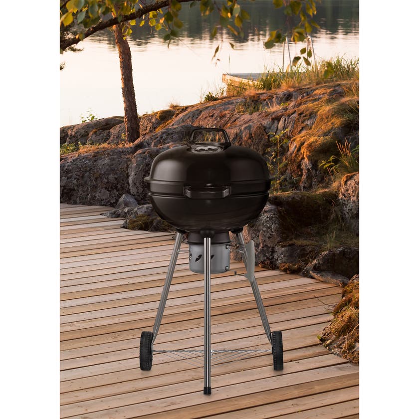 Traditionell klotgrill med ben! Tillred läckra grillrätter på denna kolgrill med galler i galvaniserad stråltråd från Mustang. Grillgallret är av galvaniserad ståltråd. Locket och nedre delen har blank emaljering. Under grillen finns en löstagbar asklåda med vilken du också justerar luftmängden för glödbädden. På locket finns en luftreglerventil för att reglera draget. Kolgrillen har stadiga handtag och två stora hjul som gör den enkel att flytta.