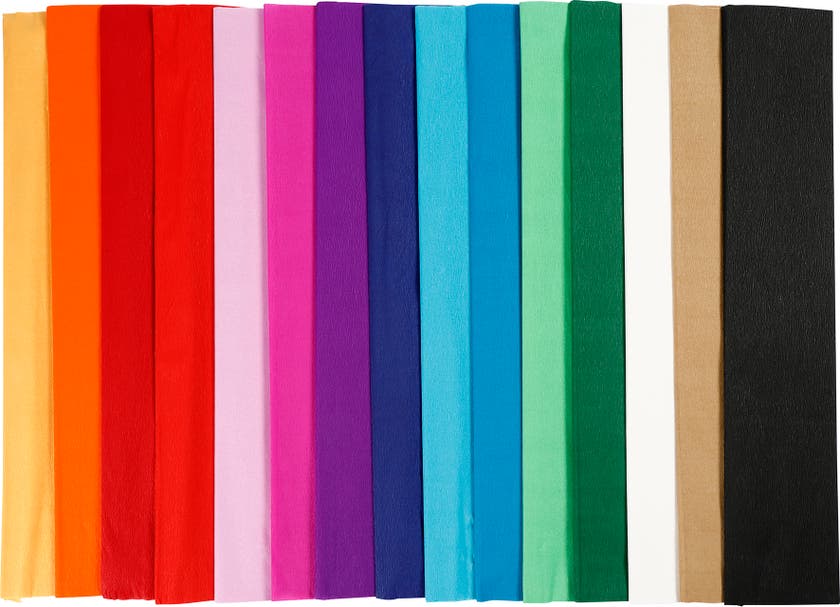 Genomfärgat kräppapper med en struktur och elastisk kvalité, för olika pysslande med färgat papper. Perfekt till pappersblommor, festutsmyckning, klipp osv. Skapa en mängd olika dekorationer med dessa kräppapper, både i vått och torrt. Kan färga av sig.