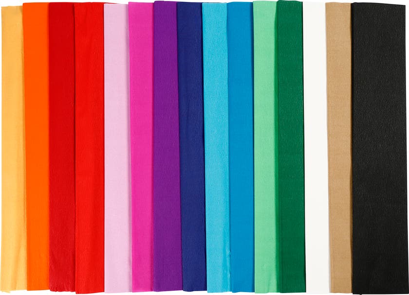 Genomfärgat kräppapper med en struktur och elastisk kvalité, för olika pysslande med färgat papper. Perfekt till pappersblommor, festutsmyckning, klipp osv. Skapa en mängd olika dekorationer med dessa kräppapper, både i vått och torrt. Kan färga av sig.