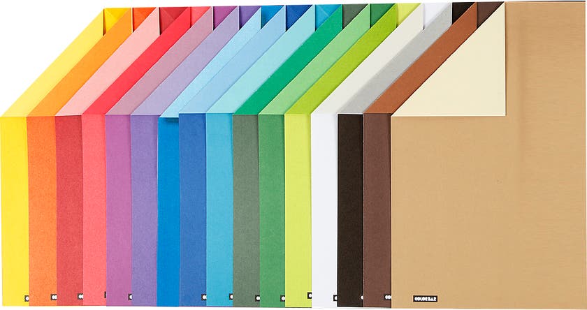 Två-färgat och mönstrat papper. Användbart till mycket - olika typer av dekorationer och pyssel. Observera att texten "Colobar" är tryckt på pappret.