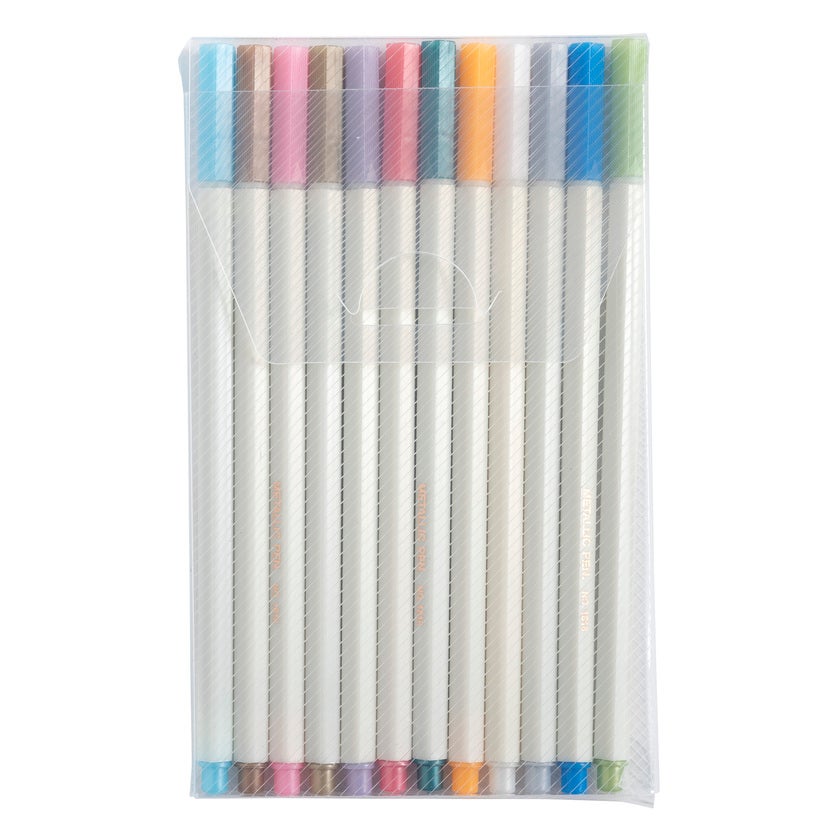 Innehåller: 12 pennor i metallfärger speciellt designade för att skriva på svart papper. Två ark klistermärken med klassiska pastellfärgade mönster och två ark original och trendiga guldfärgade klistermärken, med totalt 300 klistermärken. Ett set med två schabloner med en geometrisk mönstertavla och en barnmönstertavla + ett set med två kraft- och guldfärgade fotohörn. Totalt: 48 delar.