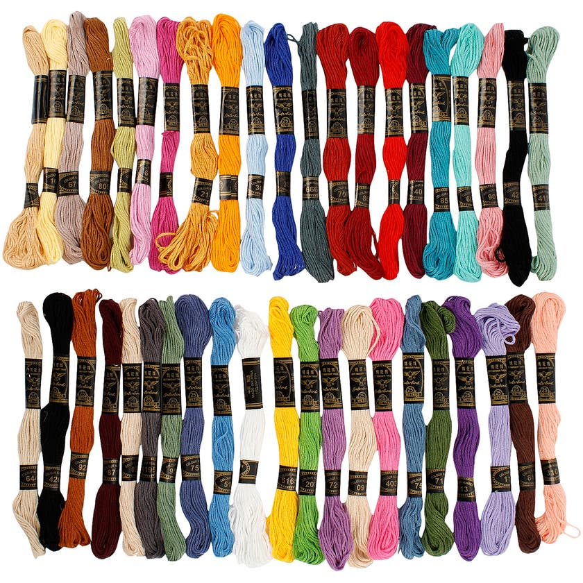Broderigarn i riktigt fin kvalitet. Sortiment med 42 mixade färger à 8m.