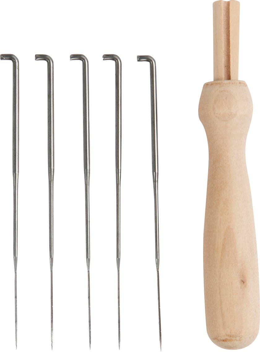 Filtnålshållare. Praktisk nålfiltshållare i trä till 1 nål, inkl. 5 mellannål.