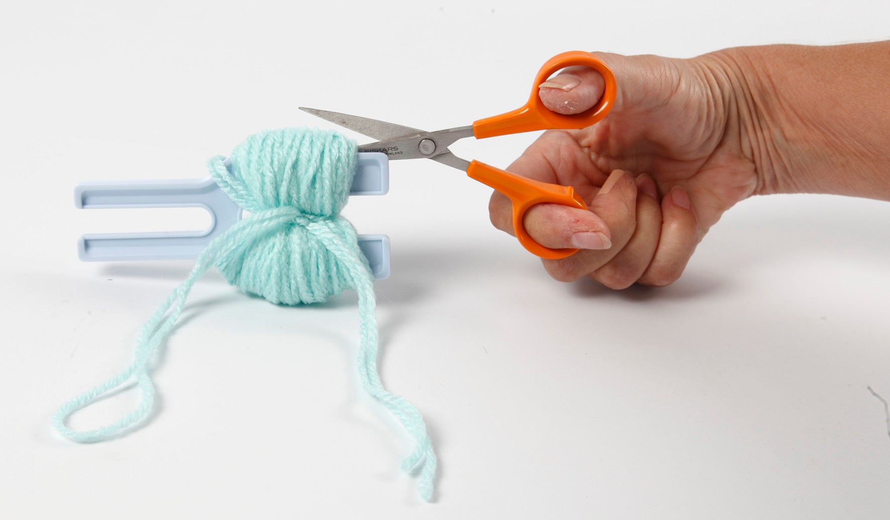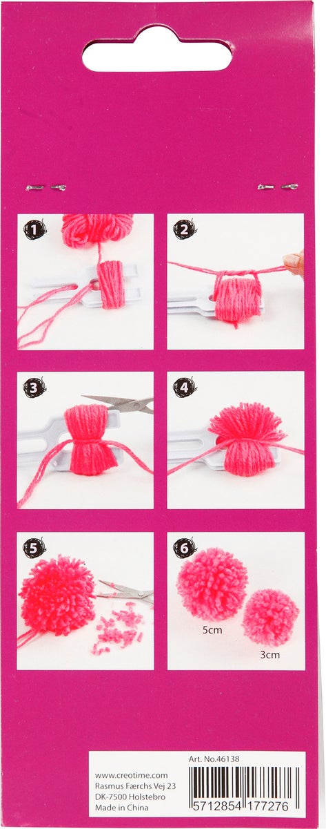 Praktiskt verktyg av plast för tillverkning av pompomer i 2 stl. (diam. ca. 3 och 5 cm.). Enkelt att tillverka egna garnbollar med detta verktyg.